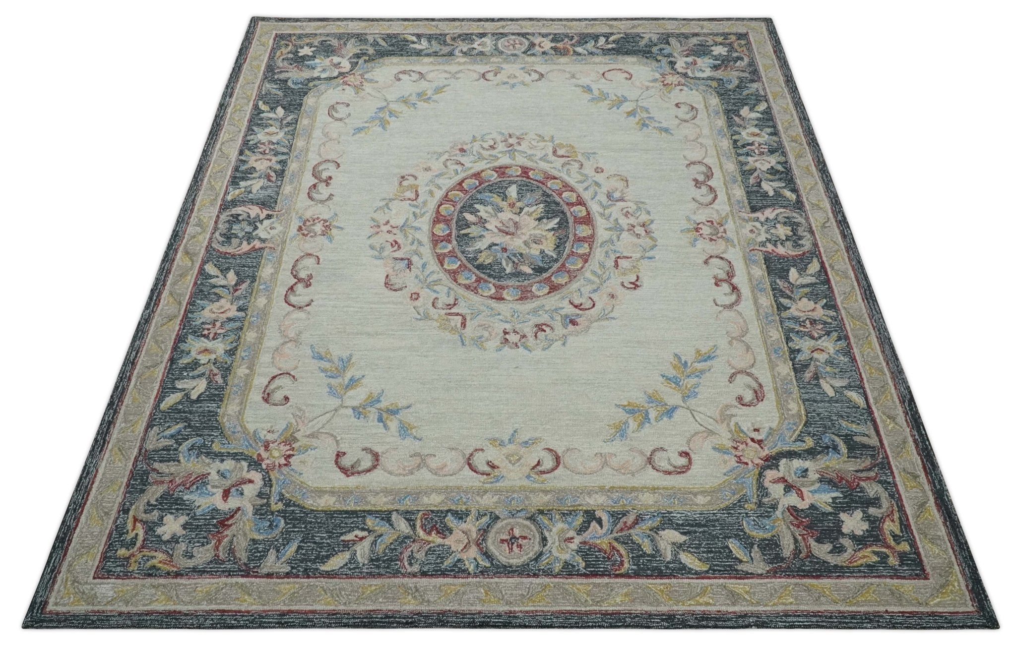 This hand-ufted wool rug brings timeless elegance to any space. Featuring an Aubusson design in Silver and Charcoal, this 8x10 piece is the perfect addition to any room. Enjoy the luxurious feel of this durable and stylish wool rug.