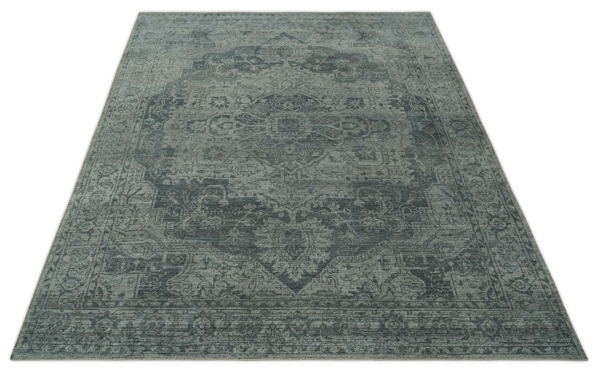 This premium 8x10 wool rug is perfect for any traditional space. Featuring an antique design in charcoal and silver, this Heriz medallion rug will lend a timeless, classic appeal. Expertly crafted for maximum durability, this area rug is sure to last for years to come.