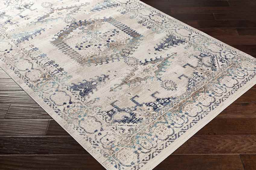 The Burford Traditional Aqua Area Rug features many colors such as aqua, charcoal, navy, dark brown, taupe, white, and denim. Even after this long list of colors, it is evident that the palette is still simple and neutral. This makes it the ideal rug to match to any room, no matter what colors their existing furniture and decor are. The design gives the rug a look of sophistication, because of the classic patterns it has. The beautiful florals, leaves, and shapes really bring the muted colors to life.