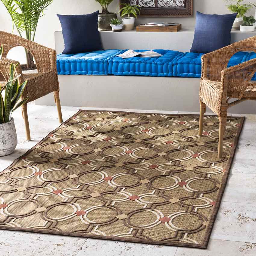 Infuse your home with rustic-inspired charm using the Eli Cottage Khaki Area Rug. Featuring a captivating geometric pattern in khaki tones, this rug radiates warmth and creates a cozy atmosphere in any space. Crafted with meticulous attention to detail, its durable machine-woven construction is designed to withstand everyday wear and tear. Made from 100% polyolefin in Turkey, this low-pile rug is stain-resistant, kid and pet-friendly, and even safe for outdoor use. Whether indoors or out, the Eli Cottage Rug brings timeless elegance and functionality to your home.