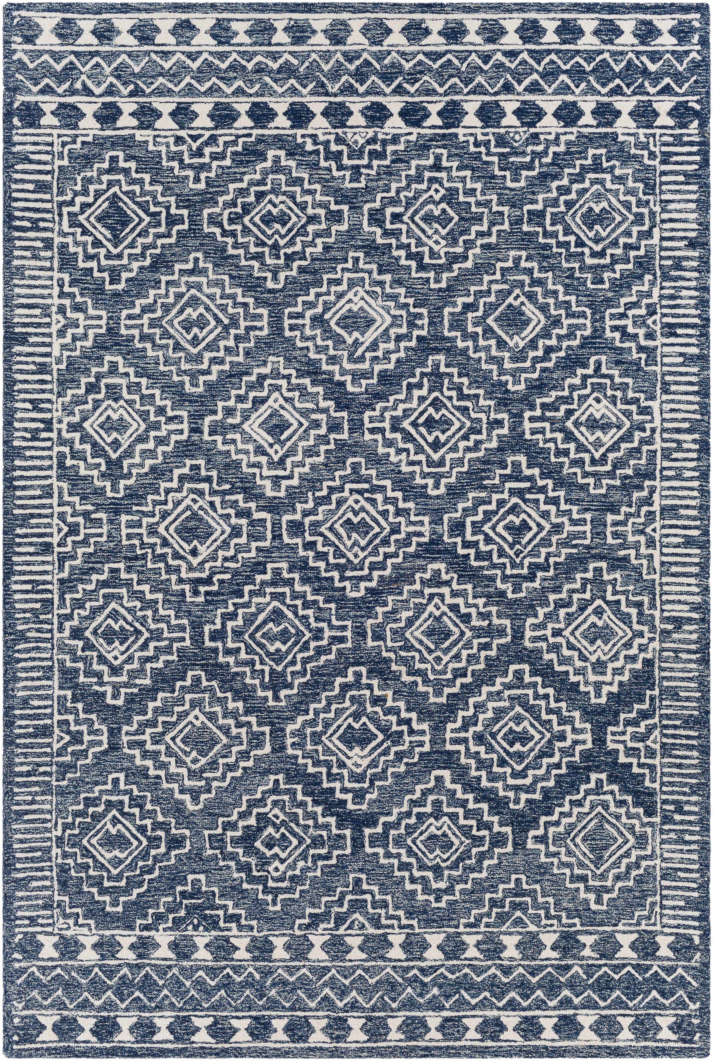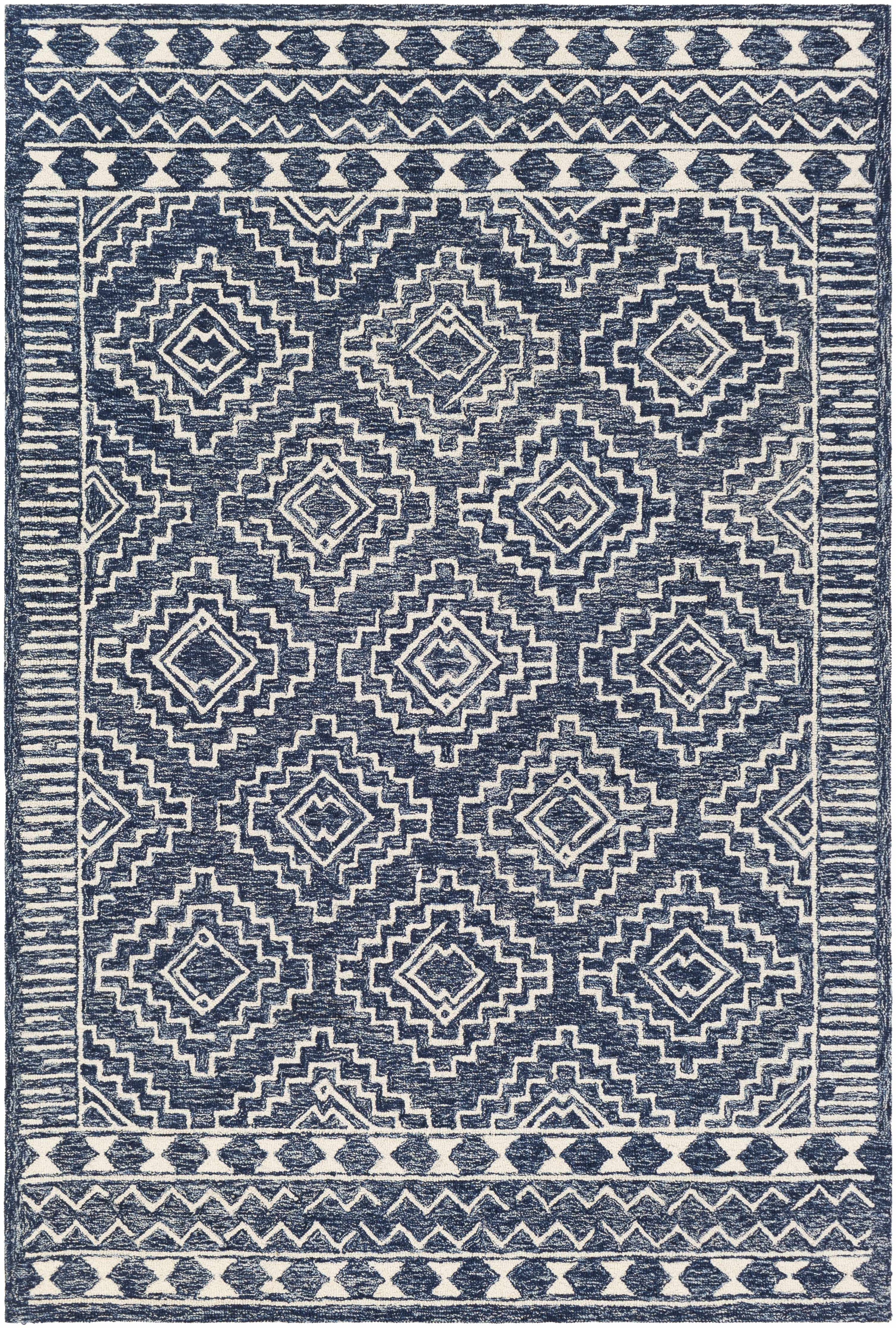 Brand: Hauteloom Collection: Horton Colors: Beige,Light Blue,Navy Construction: Hand Tufted Material: 100% Wool Pile: Low Pile Styles: Traditional Outdoor Safe: No Made In: India