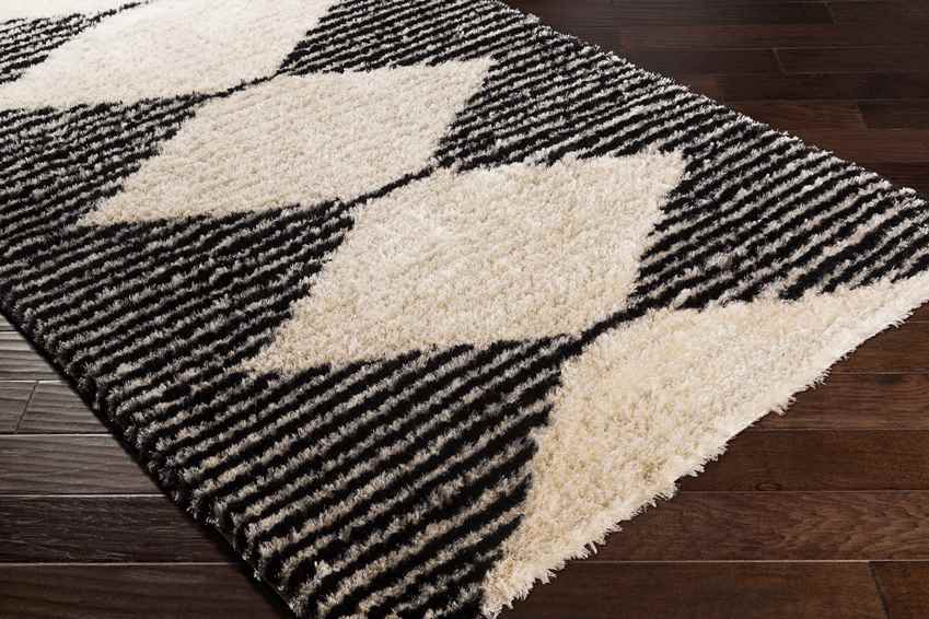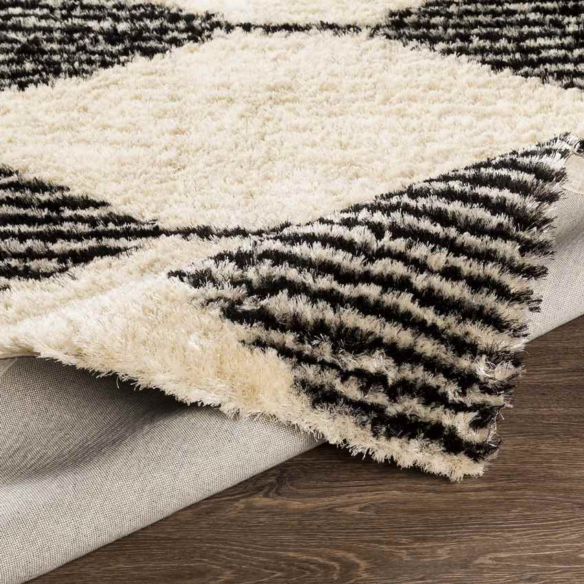The opposite colors black and white show themselves in the Kantje Modern Black Area Rug. With geometric shapes, it gives a modern and simple vibe to the room. Made of high pile causes softness.