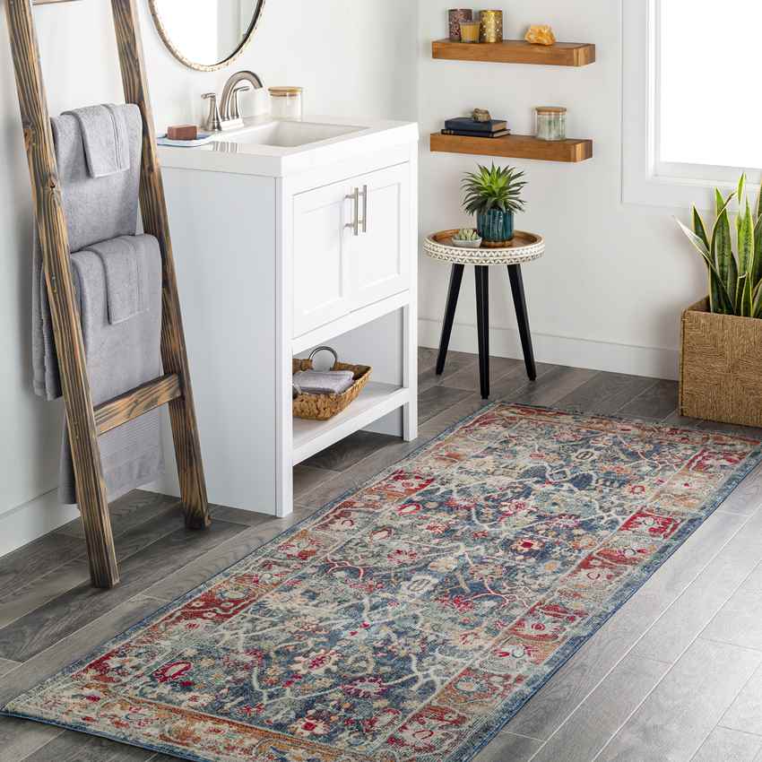 The Le Gosier Updated Traditional Ice Blue Area Rug is absolutely full of life and will surely also breathe life into whatever room it is put in. The print and patterns are so full of movement and whimsy that its almost exciting to look at. The colors are fun but not overwhelming. This eclectic piece will truly make the perfect addition to a space that needs a little more joy in its decor. If youre concerned about keeping your rug clean, you dont have to worry because this rug is resistant to stains and is easy to clean. So, even families with children or pets can enjoy having this rug in their home.
