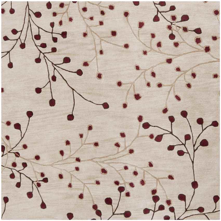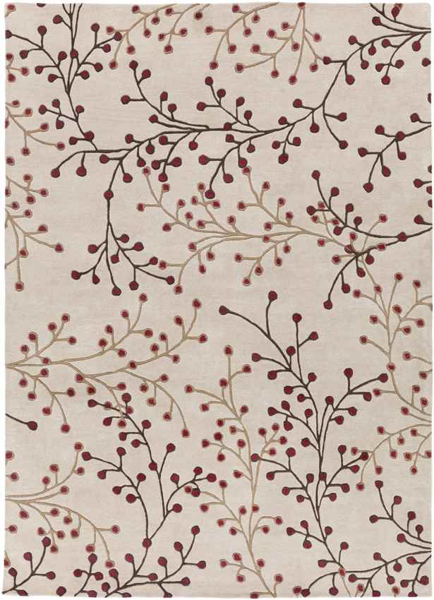 Bring a breath of fresh, pastoral charm into your home with the Le Havre Cottage Camel Area Rug. This rug isn't just a floor covering; it's a piece of art that blends rustic elegance with a touch of whimsy. Hand-tufted in India from the finest wool, this rug features a unique high/low construction that creates a captivating textural dimension. The delicate, vine-like patterns, adorned with rich burgundy and earthy brown dots, gracefully traverse the soft, camel-toned background, creating a visually compelling centerpiece. The Le Havre Cottage Camel Area Rug offers both aesthetic appeal and a luxurious feel underfoot, making it a perfect addition to any room seeking a blend of comfort and style.