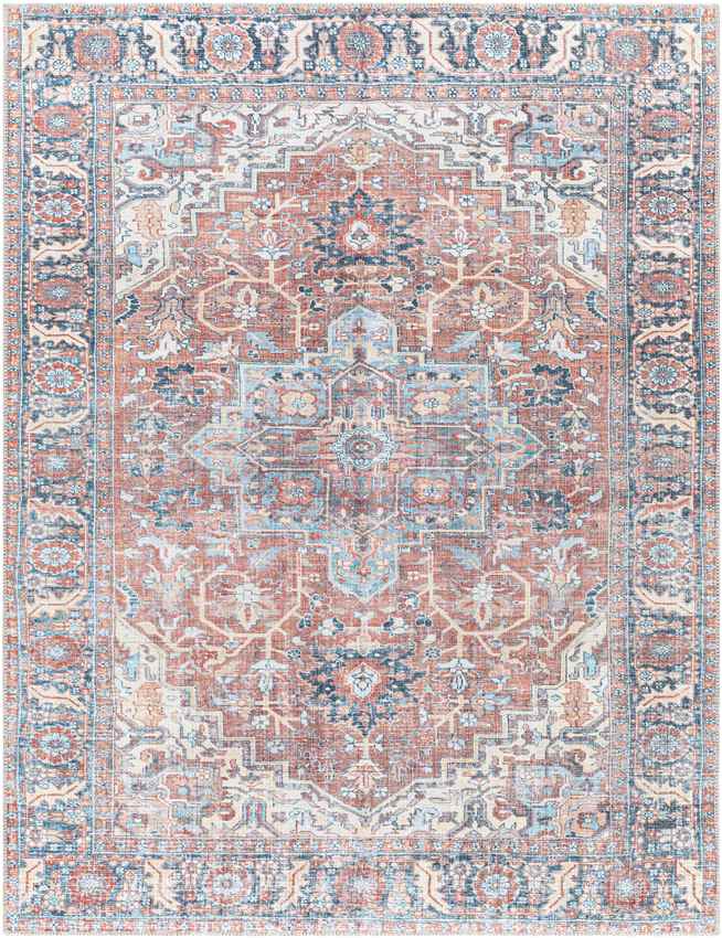 Shop now and bring home the beauty of the Lorin Traditional Rust Washable Area Rug - a perfect mix of charm, comfort, and effortless care!