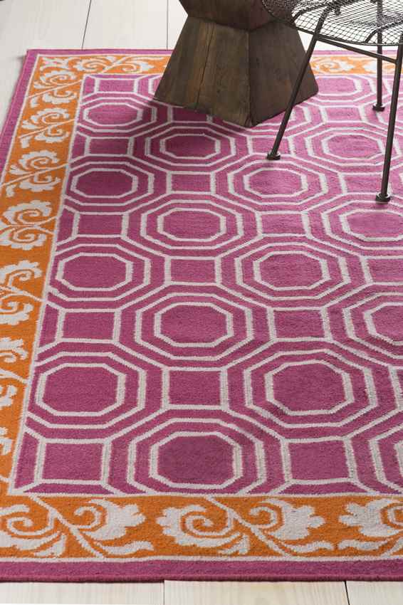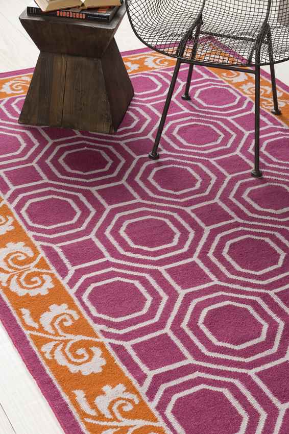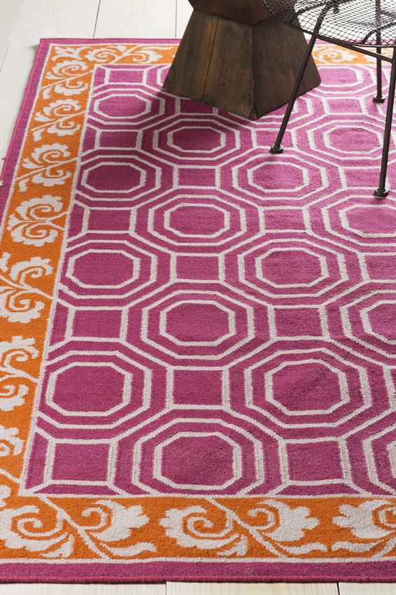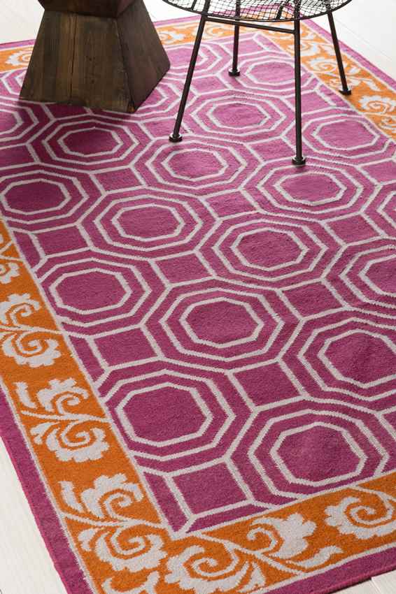 - Colors: Fuchsia, Burnt Orange, Light Gray