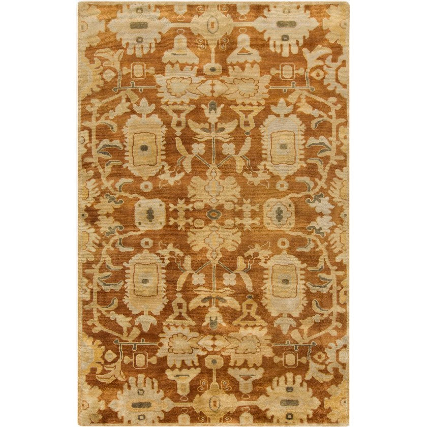 The rich tones and intricate pattern of this rug bring timeless elegance to any space. The burnt orange backdrop is complemented by accents of brown, mustard, oatmeal, ivory, and olive, creating a warm and inviting aesthetic. Whether you’re decorating a cozy living room, a sophisticated study, or a formal dining area, this rug provides a versatile foundation that complements any style of decor.