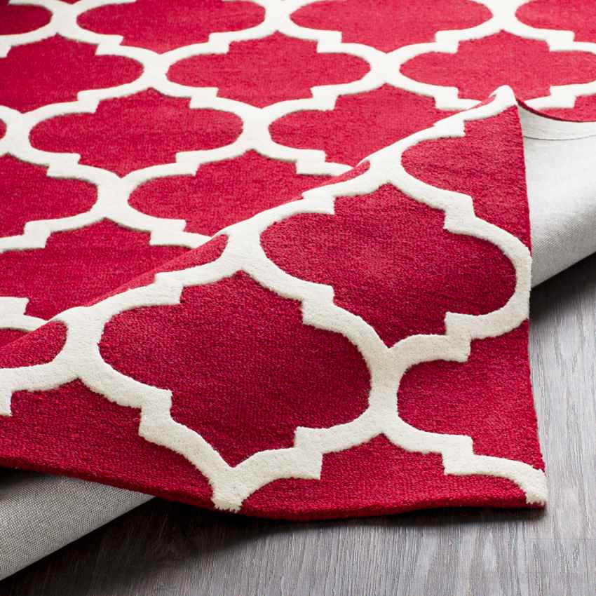 Infuse your home with warmth and rich character using the Rimini Cottage Bright Red Area Rug. This eye-catching piece features a palette of bright red and ivory, evoking feelings of passion and elegance. Hand-tufted in India from 100% wool, its medium pile (0.40 inches) offers a soft, inviting texture underfoot. Inspired by medieval design motifs, this rug brings timeless charm and drama to any room.