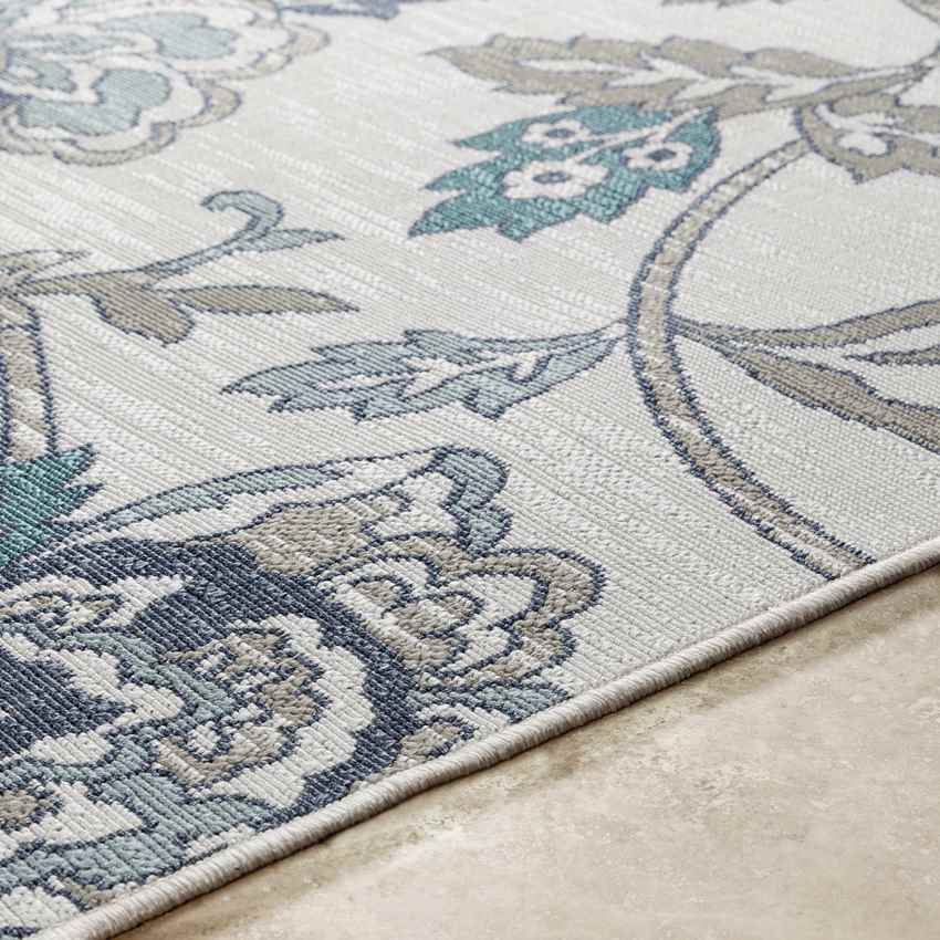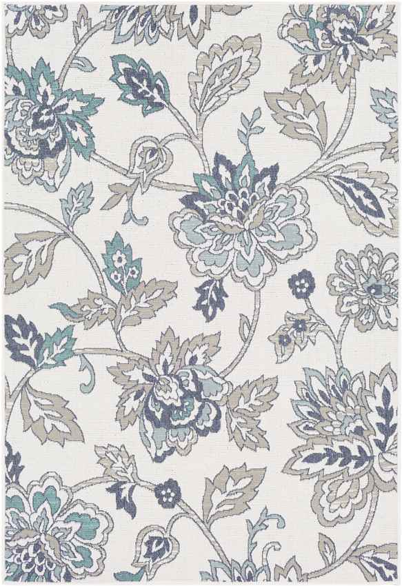 Elevate your home’s style with the stunning Selma Cottage Aqua Area Rug, a delightful fusion of artistic floral designs and country cottage charm. This rug has an exquisite palette of pale blue, taupe, white, navy, and teal, creating an inviting and serene atmosphere in any space. Crafted from durable 100% Olefin and designed with a no-pile construction, it is perfect for both indoor and outdoor use. Whether you're enhancing your living room, bedroom, or patio, the Selma Cottage Aqua Area Rug adds a touch of elegance and practicality to your home.