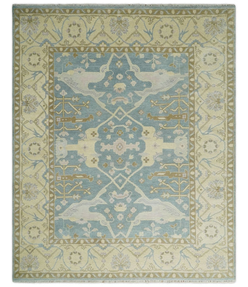 Blue and Beige Hand Knotted 8x10 Oriental Oushak Wool Area Rug | TRDCP1173810