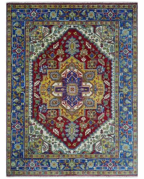 Blue, Red and Gold Hand Knotted Traditional Heriz Serapi Multi size Wool Area Rug