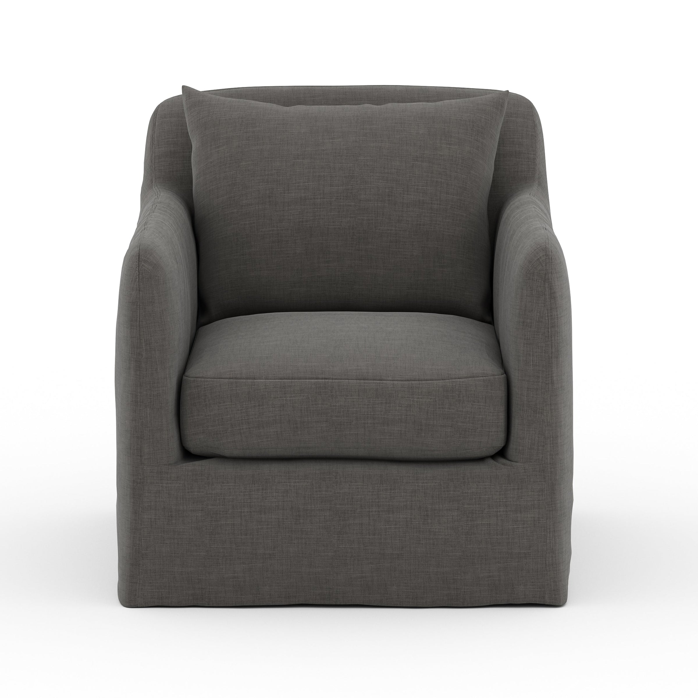 This Dade Outdoor Swivel Chair - Charcoal is a fresh, outdoor-friendly spin on the swivel chair. Removable charcoal slipcover meets style with sensibility. Great in pairs. Cover or store inside during inclement weather and when not in use.