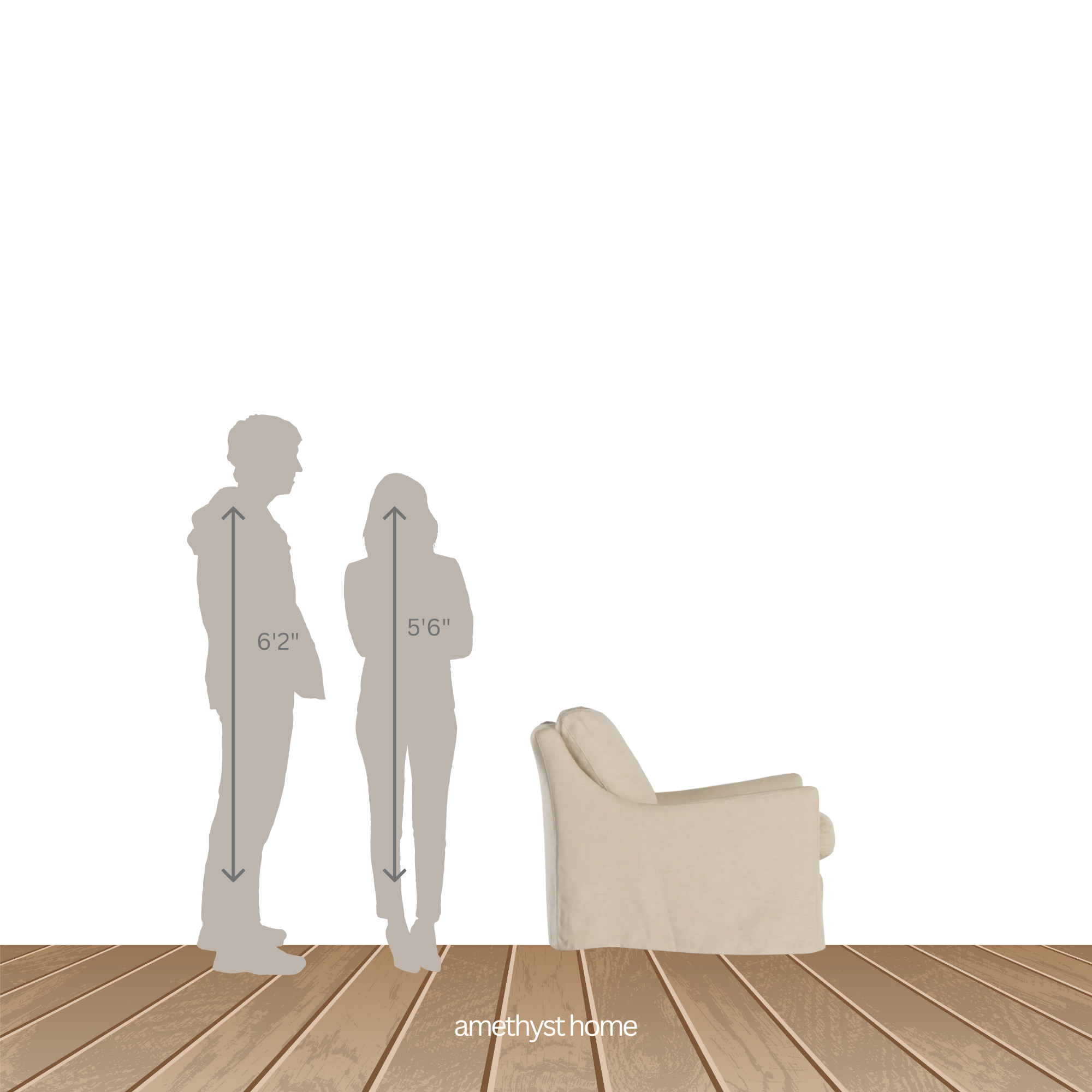 This 360-degree swivel chair is defined by slightly sloping, flared arms and a floor-length slipcover. Finished in a soft, tight weave slipcover for a traditional style. Durable and soft to the touch, Libeco™-sourced linens are artisan-made and free of toxic chemicals. Slipcovered styles are fully removable and machine-washable for easy care.