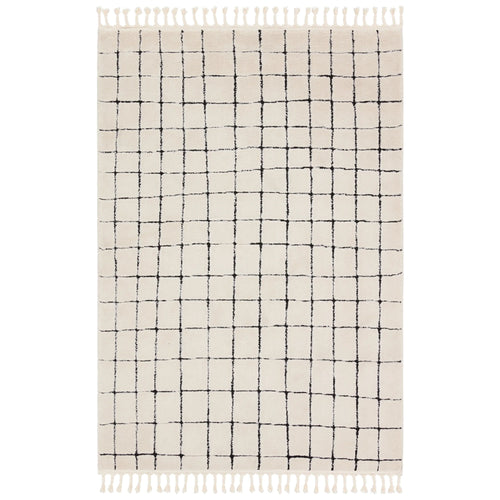 Jarales Cream/Black Tribal Tassel Wool Rug - Clearance