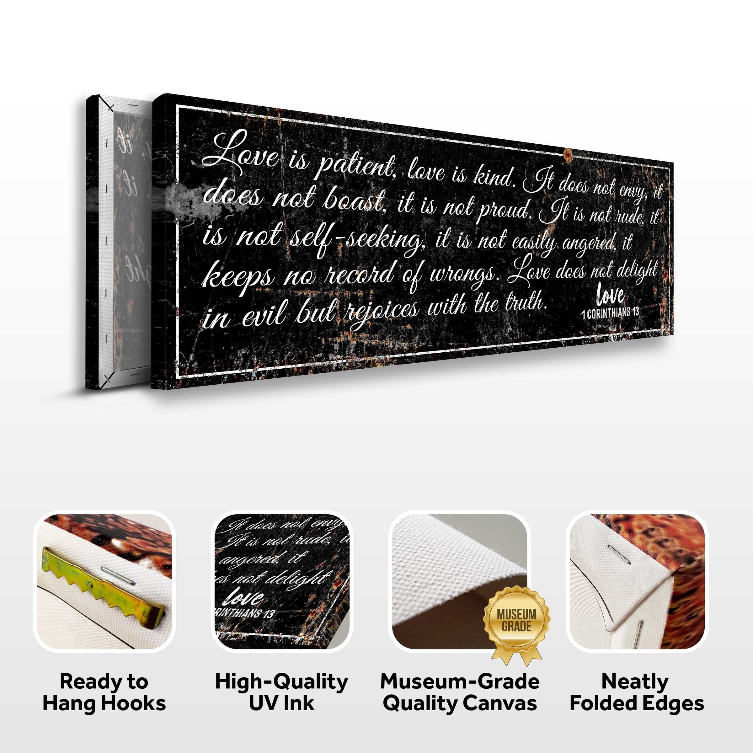 1 Corinthians 13: 'Love Is Patient' - Rustic Christian Wall Art, Religious Decor for Living Room