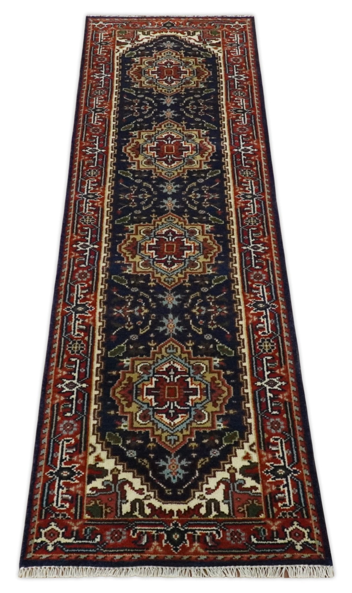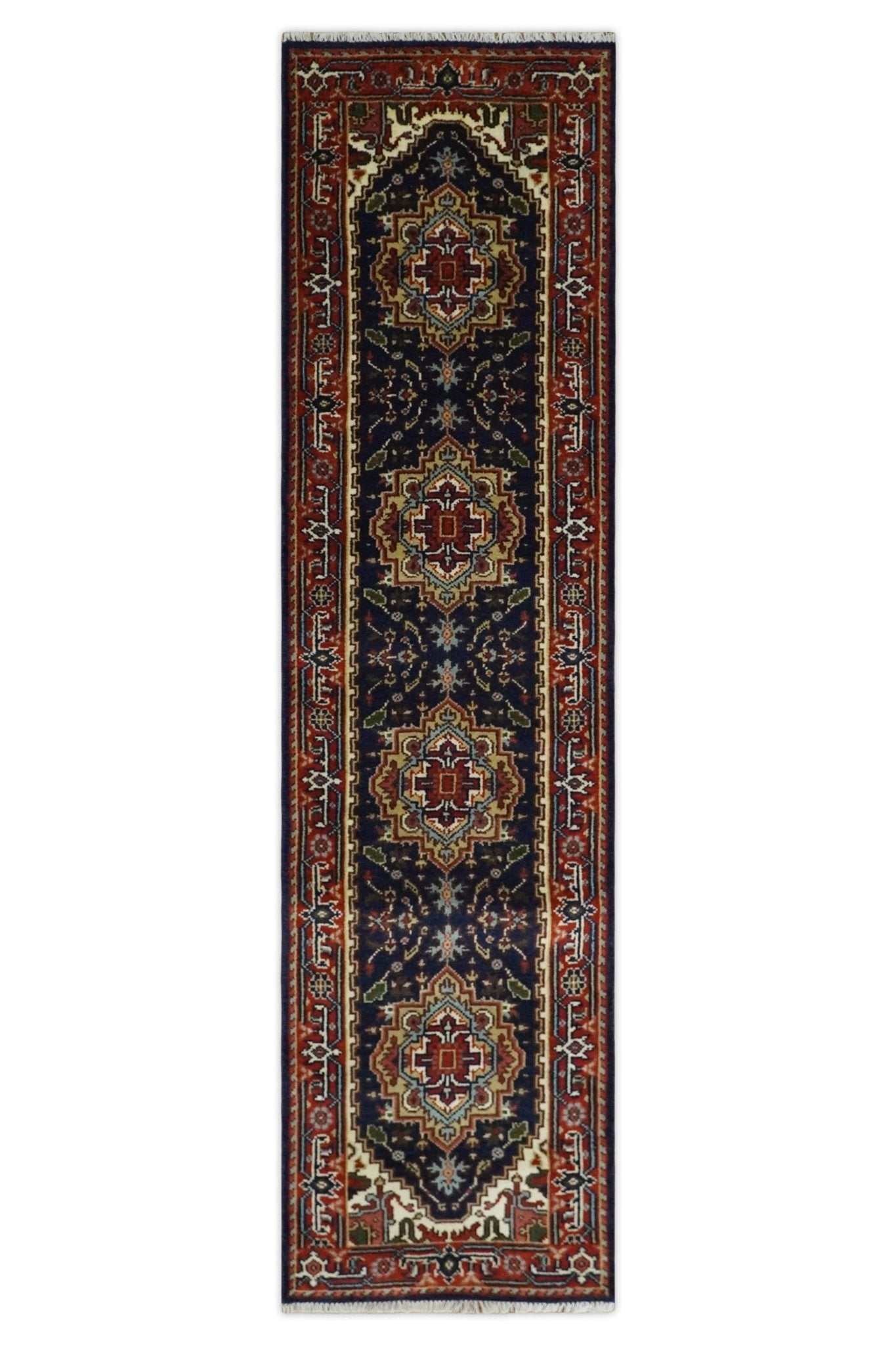10 feet runner Hand knotted Mustard, Blue and Brown Traditional wool area rug