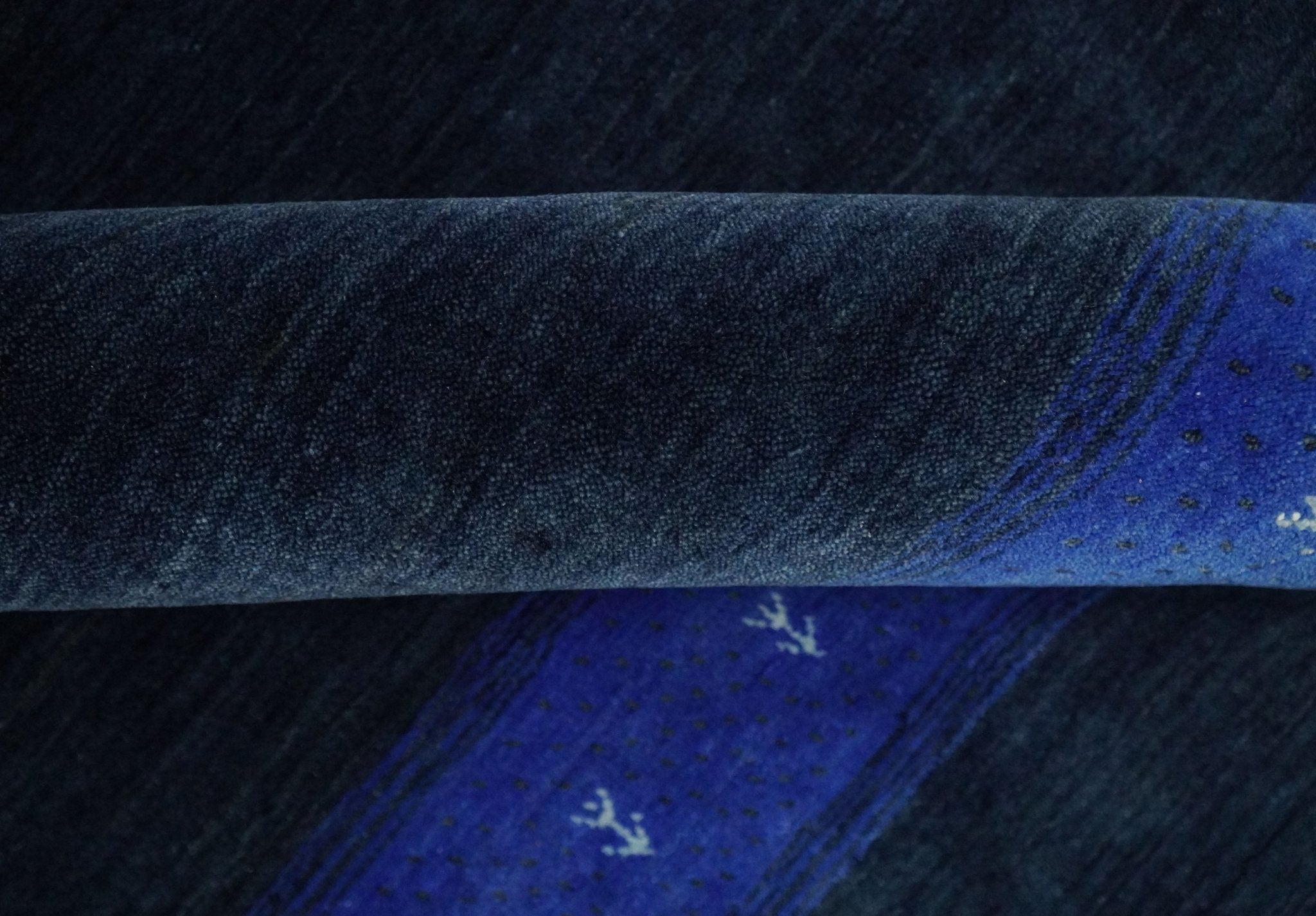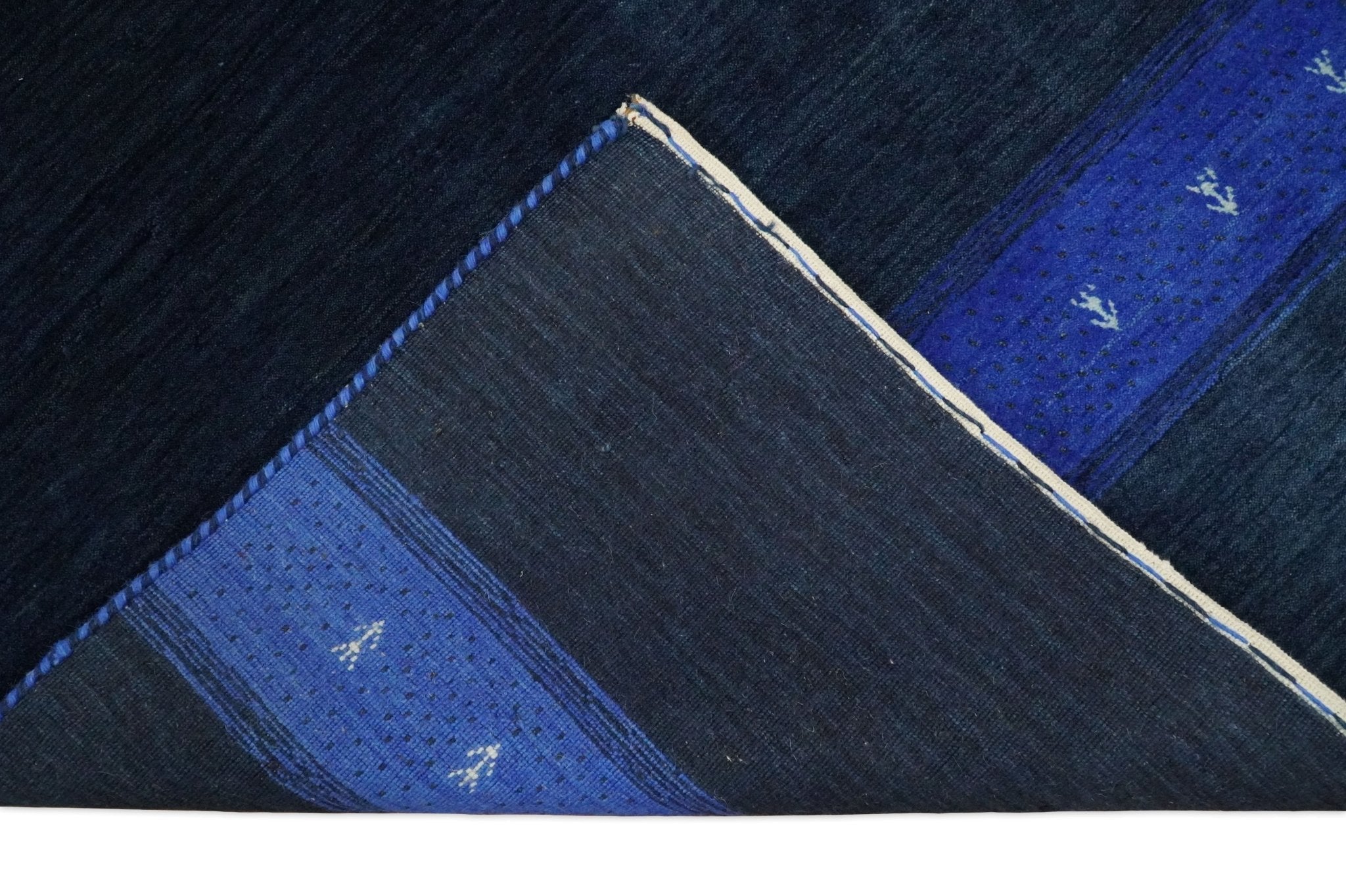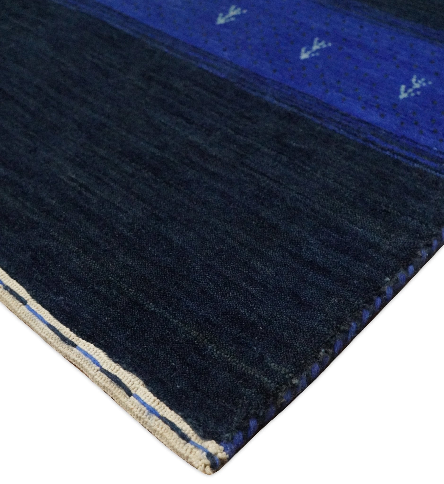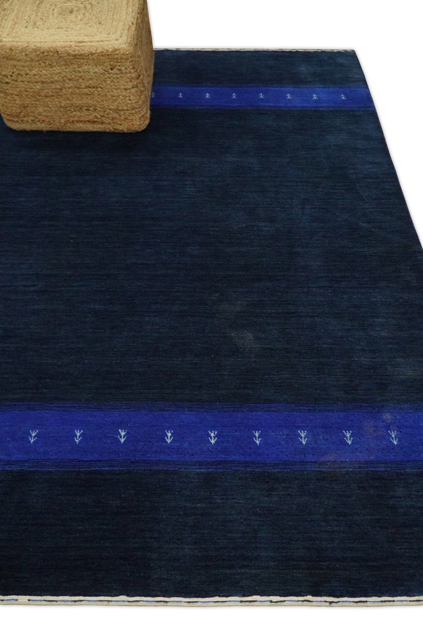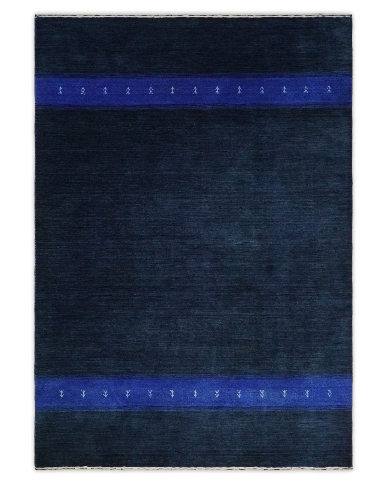 4x6 Solid Blue Wool Hand Woven Southwestern Gabbeh Rug | LOR21