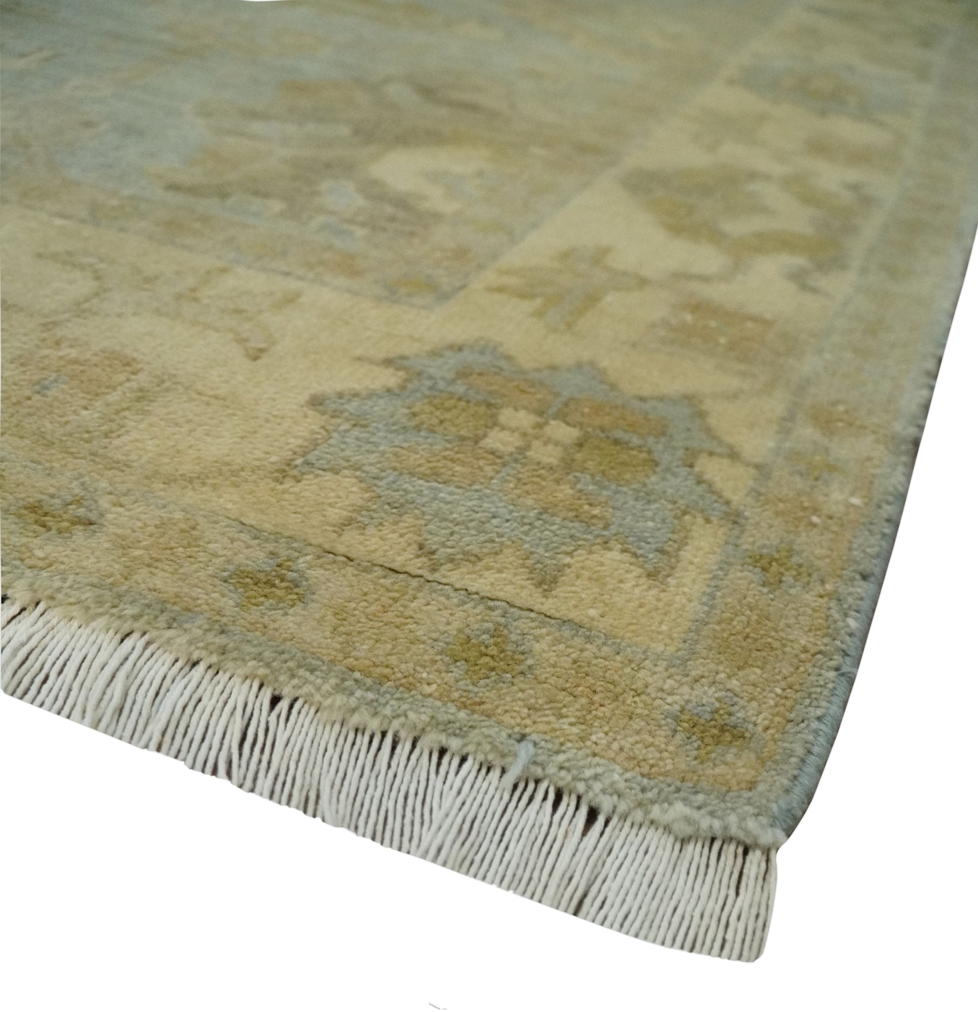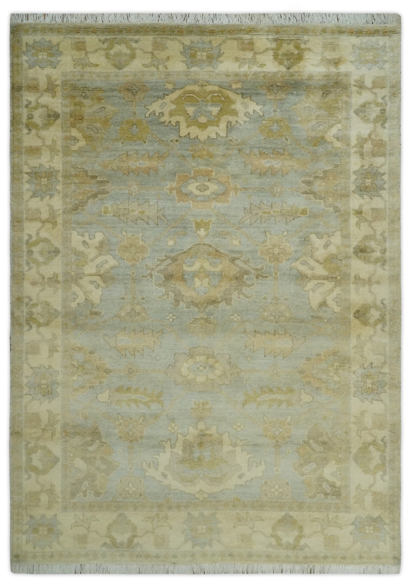 5.8x8.6 Traditional Silver, Beige and Brown Antique Style Hand knotted Oushak wool Area Rug