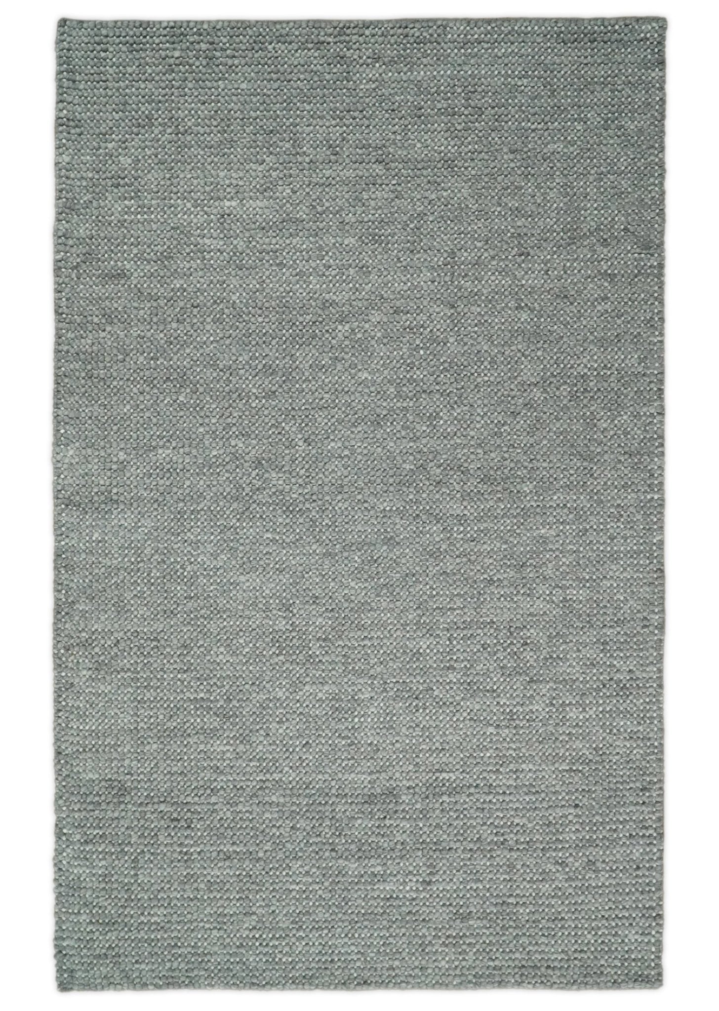 5x8 and 8x10 Solid Gray Chunky Handwoven Wool Area Rug, Layering Rug | TRD2381