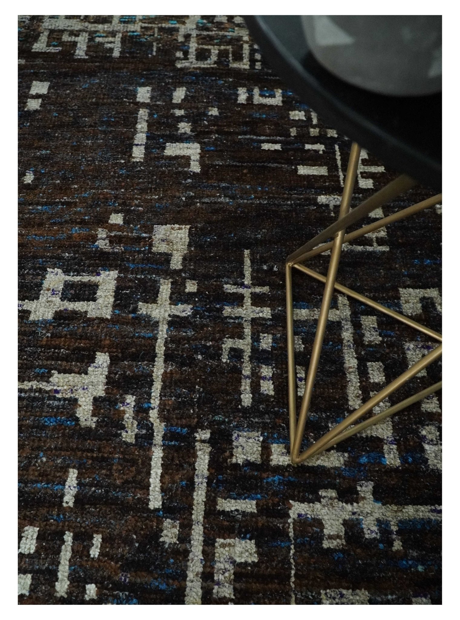 This fine hand-knotted rug uses recycled silk to add a luxuriously stylish touch to any living space. Crafted with camel and brown hues, this 5x8 or 9x12 modern abstract design with contemporary accents is perfect for any decor.