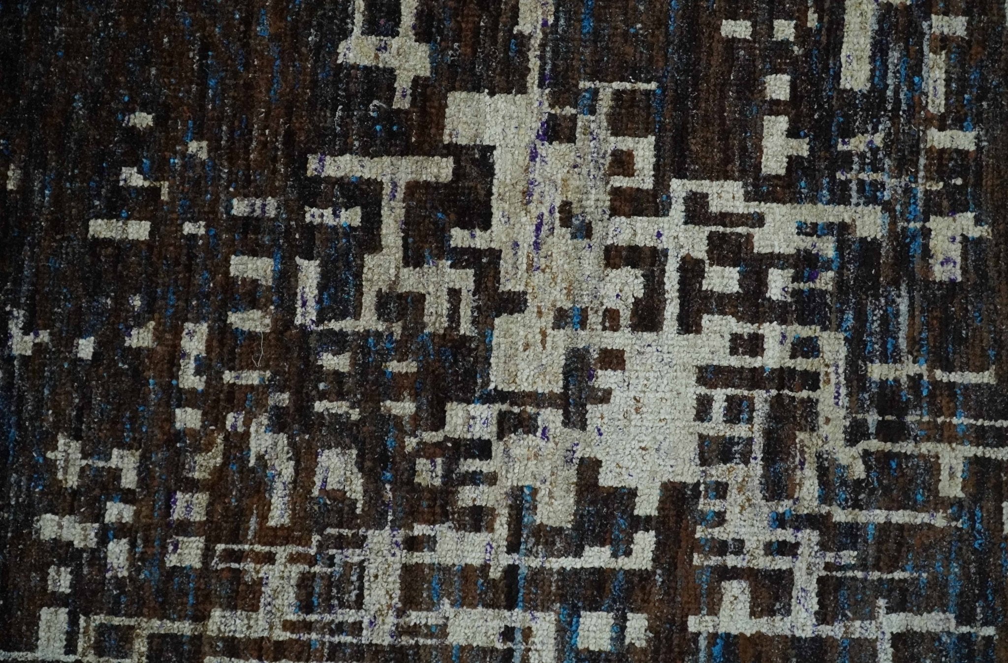 5x8 and 9x12 Hand Knotted Camel and Brown Modern Abstract Contemporary Recycled Silk Area Rug | OP29