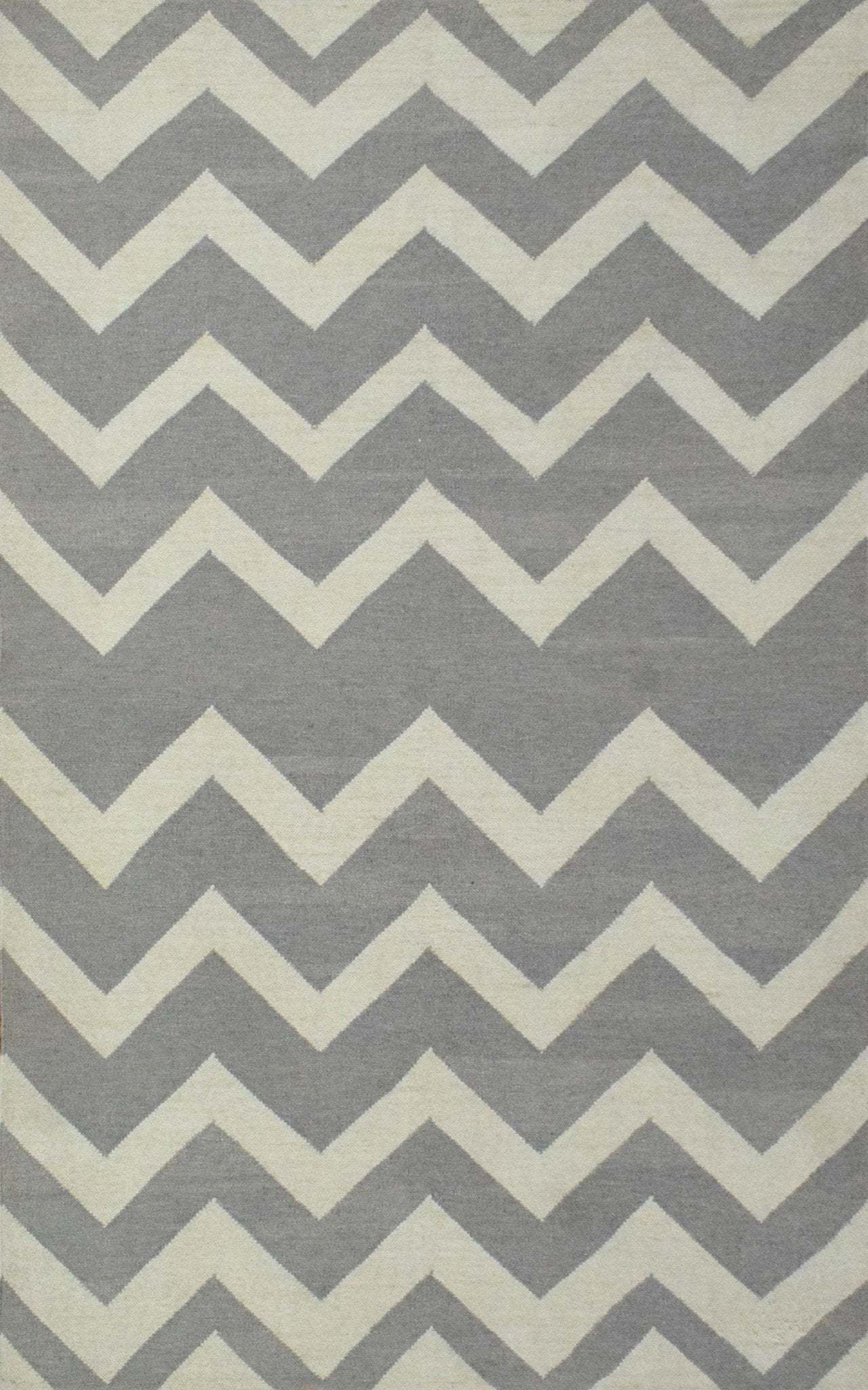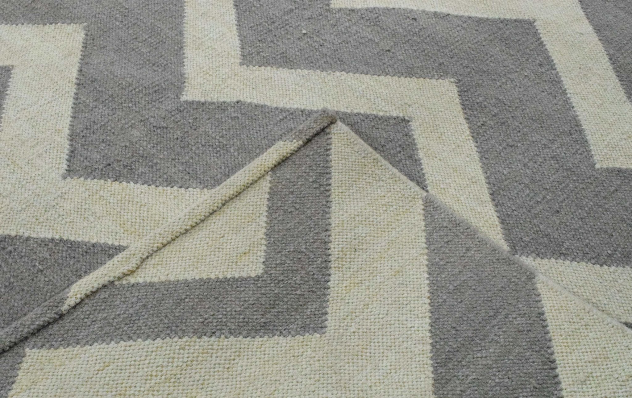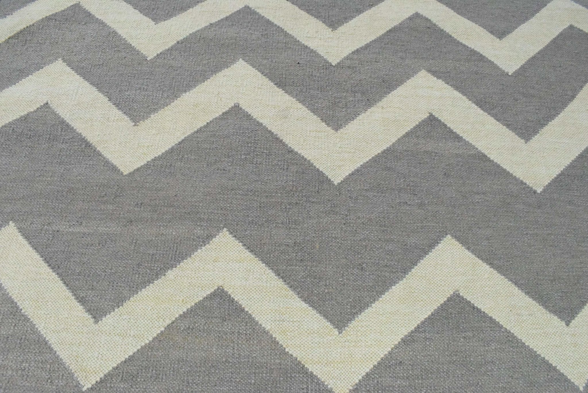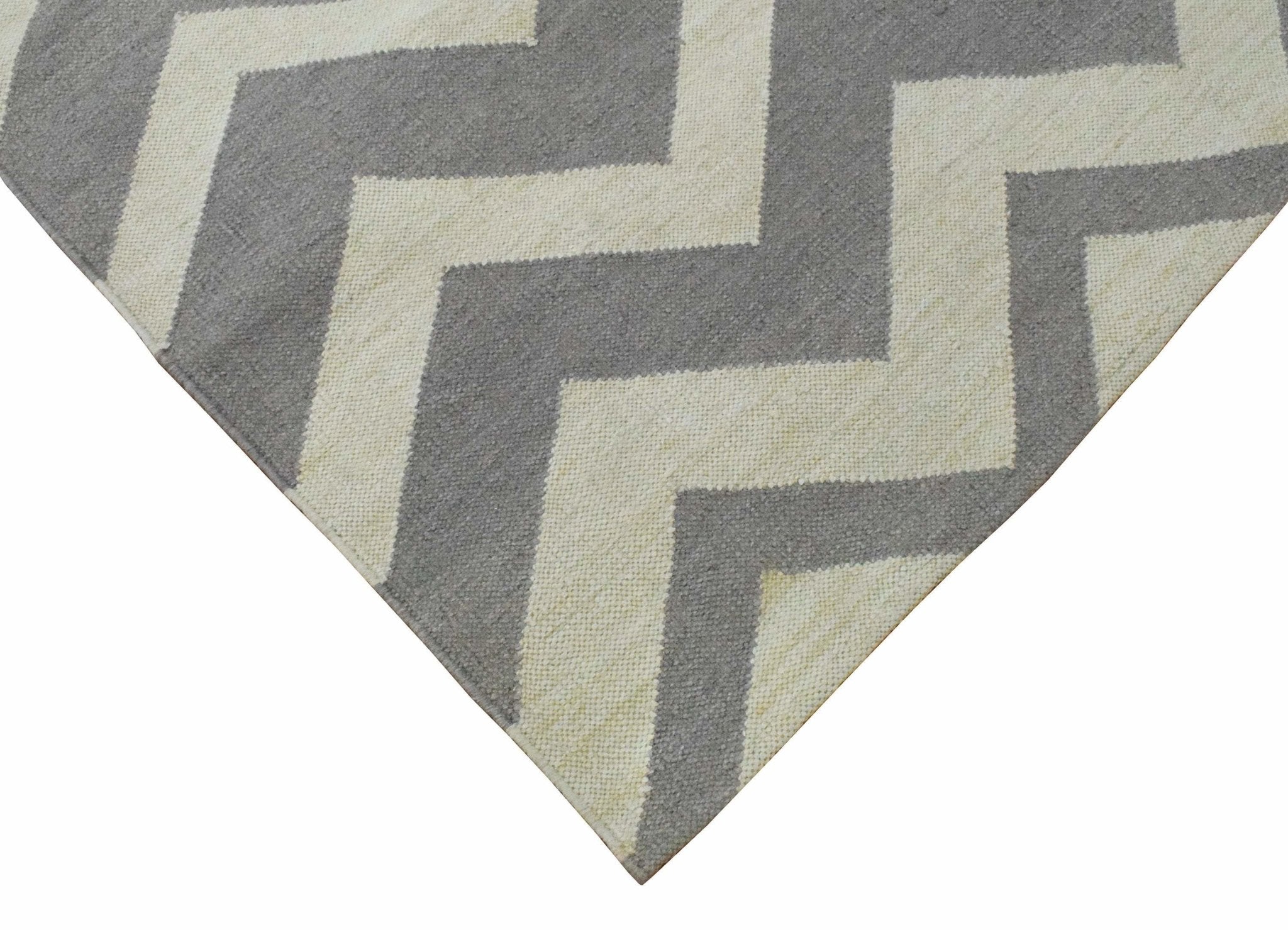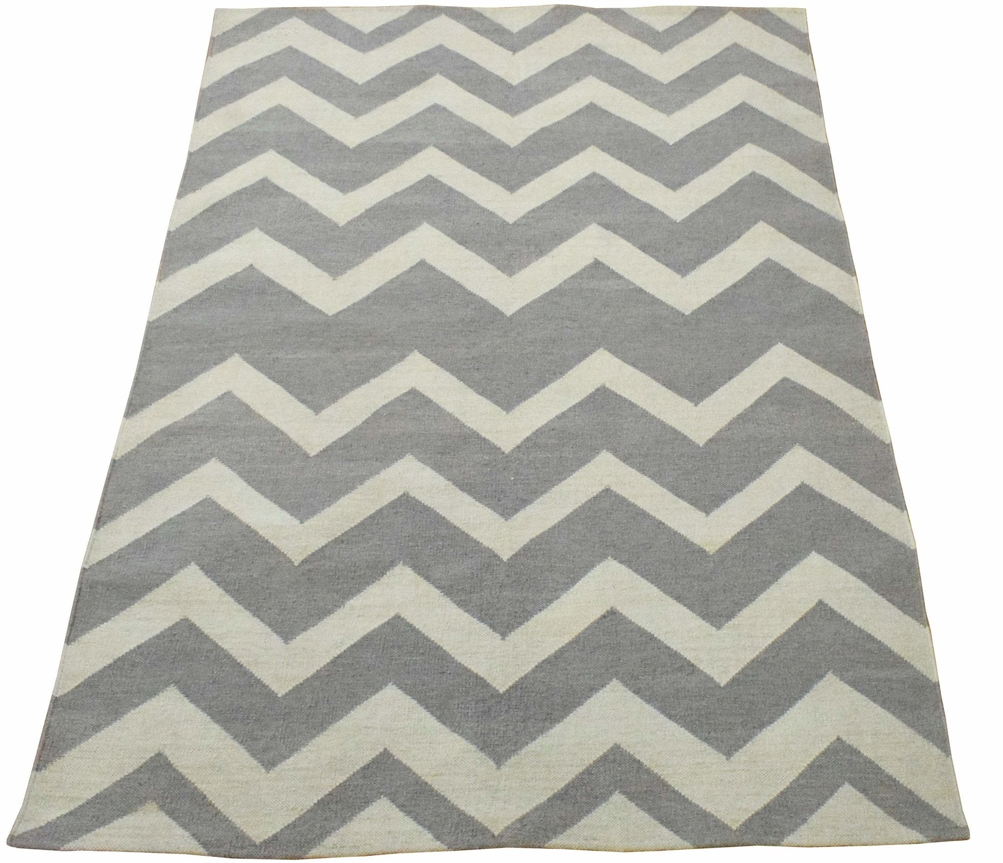5x8 Dhurrie Rug, Gray and White Chevron Pattern Rug