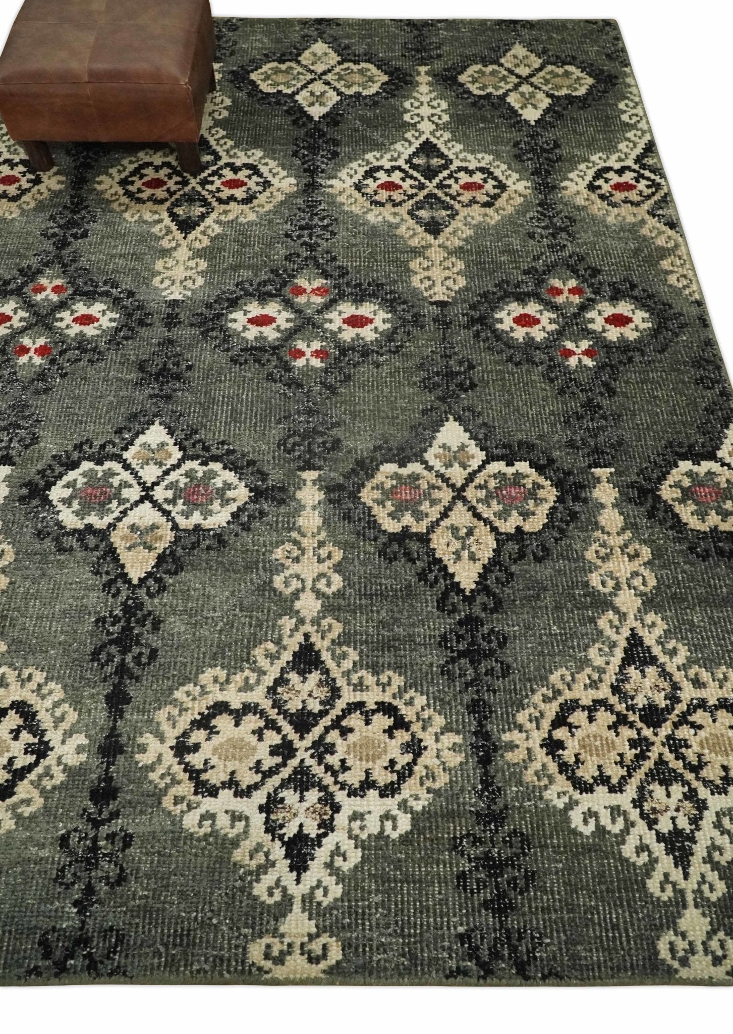 5x8 Hand Knotted Moss Green, Beige and Black Antique Persian Style Contemporary Recycled Silk Area Rug | OP73