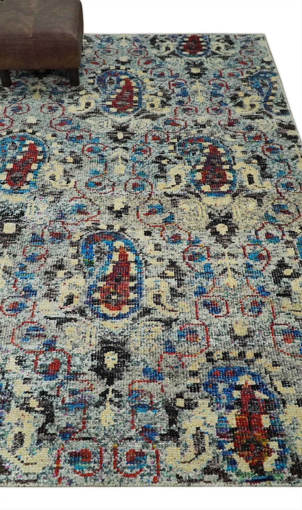 This Hand-Knotted Rug has been Made with Handspun Recycled Silk. The beautiful colors of the rug and the modern design of the rug complete your space without making it look busy. Hand-Knotted rugs are durable and can last for decades if treated right.