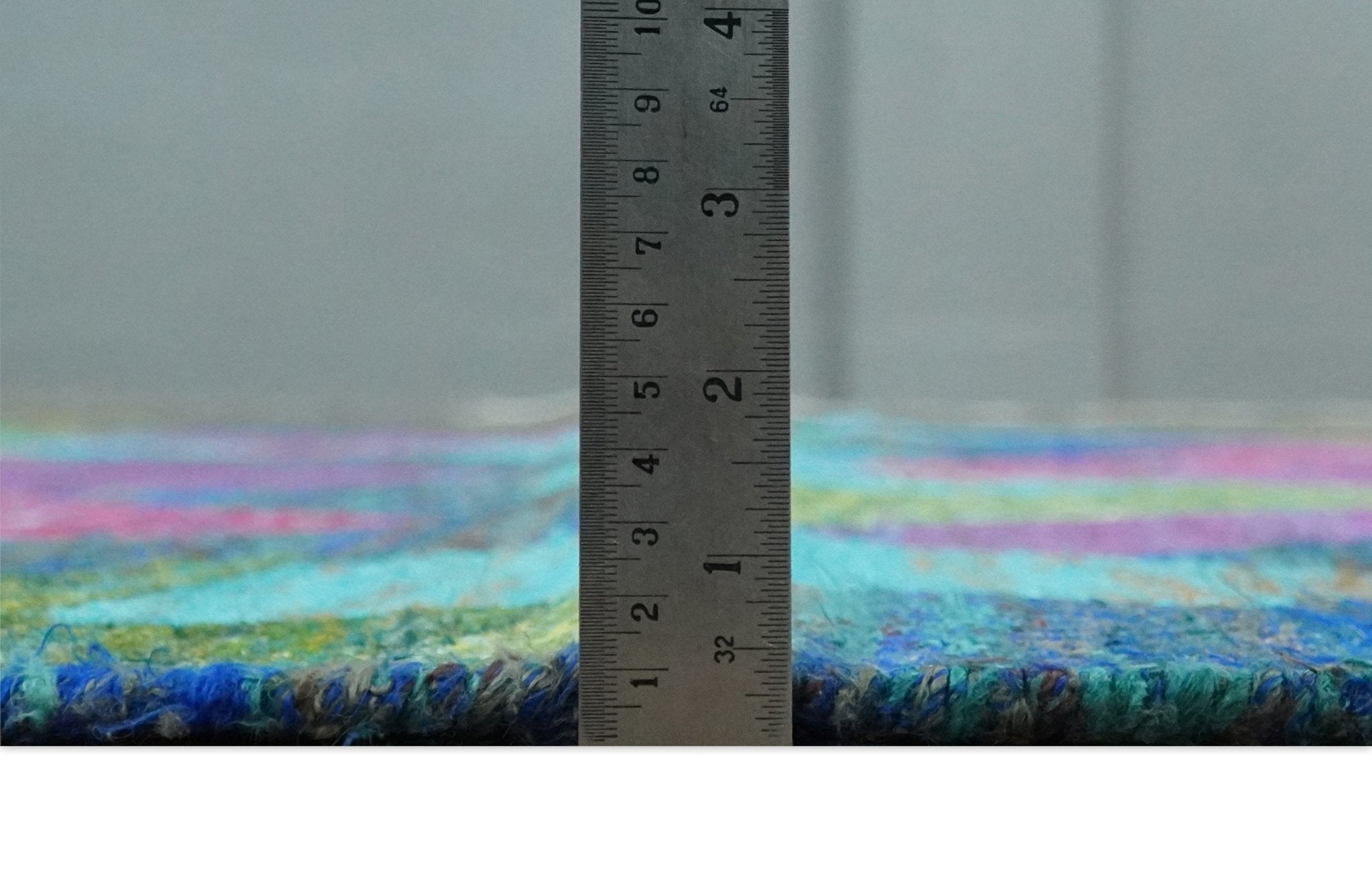 This Hand-Knotted Rug has been Made with Handspun Recycled Silk. The beautiful colors of the rug and the modern geometric design of the rug complete your space without making it look busy. Hand-Knotted rugs are durable and can last for decades if treated right.