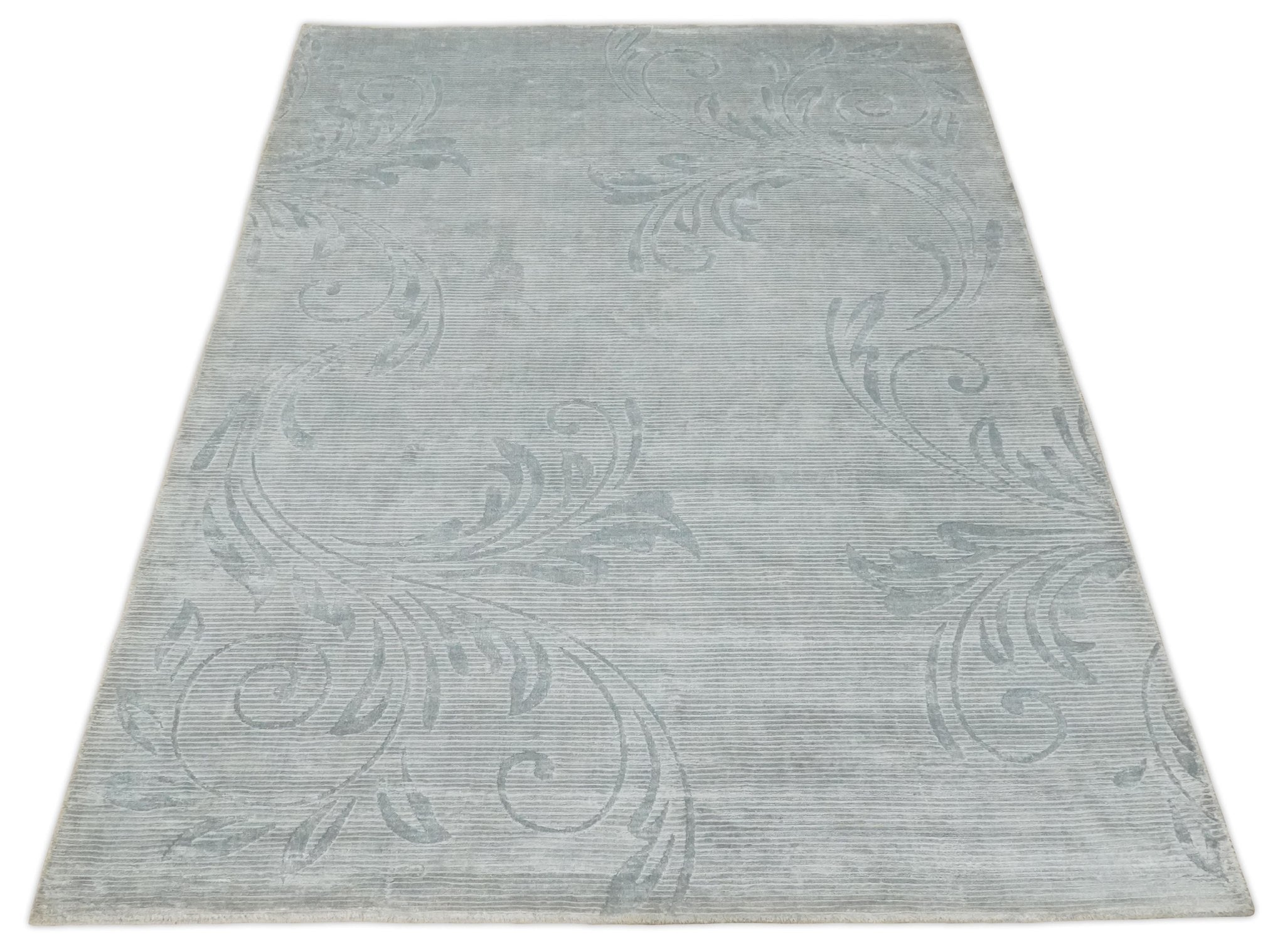 5x8 Hand Woven and hand carved Carved Silver and Gray Floral Art Silk Rug | KNT9
