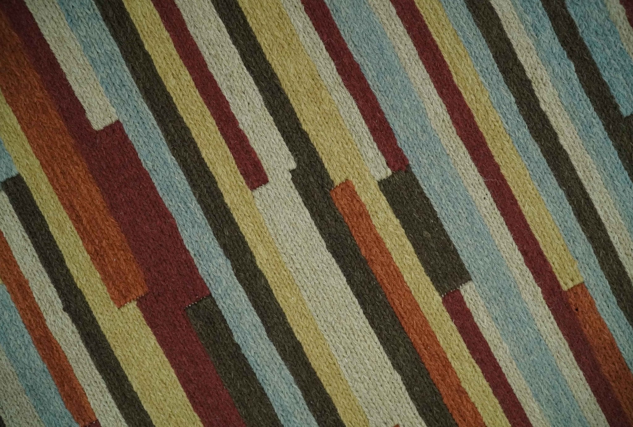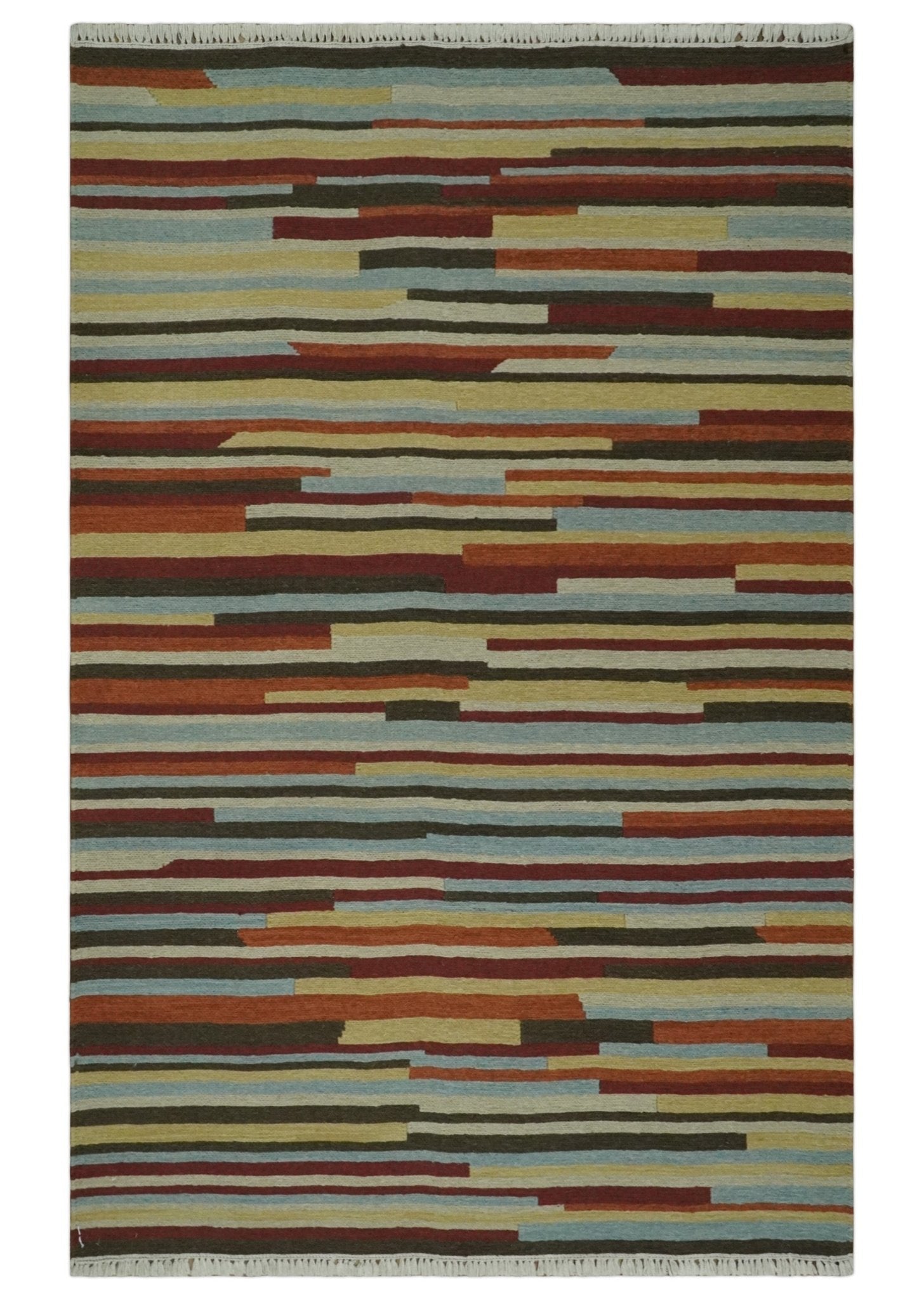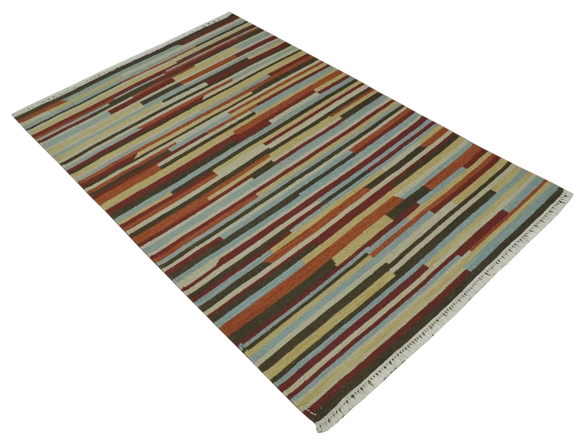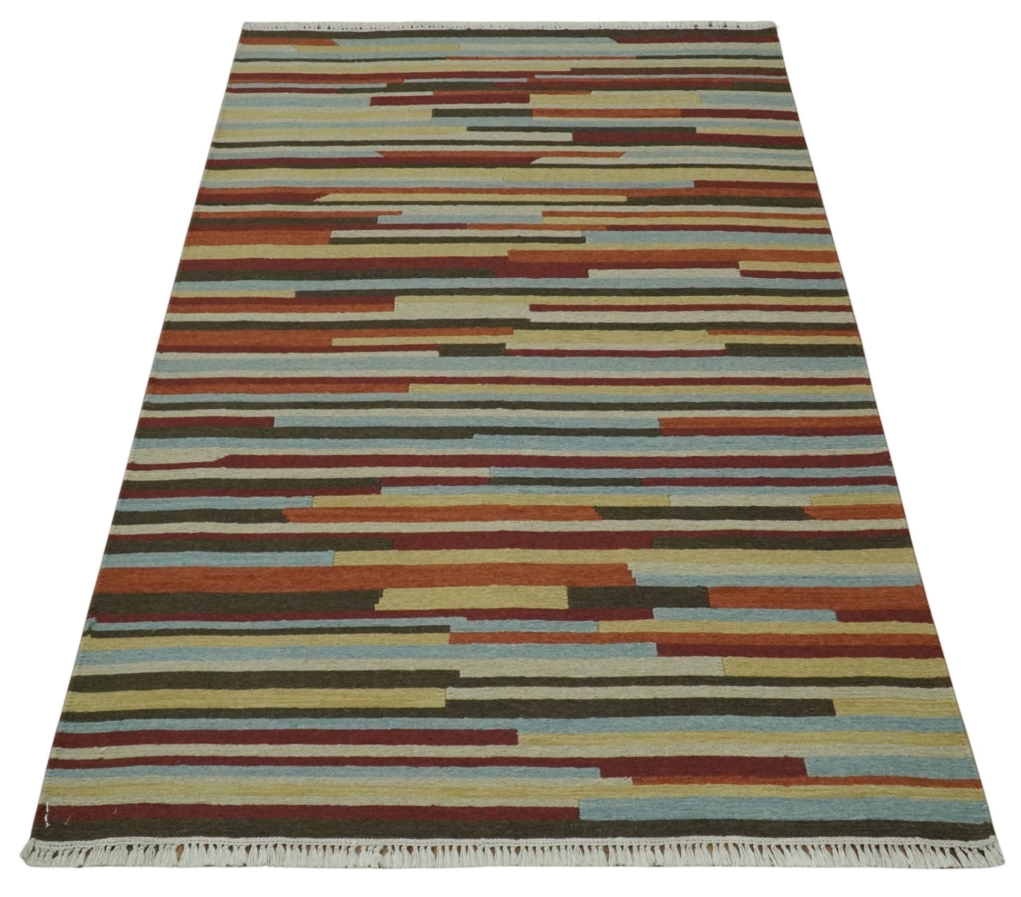 5x8 Multi color Stripes Pattern Hand knotted Farmhouse Wool Area Rug