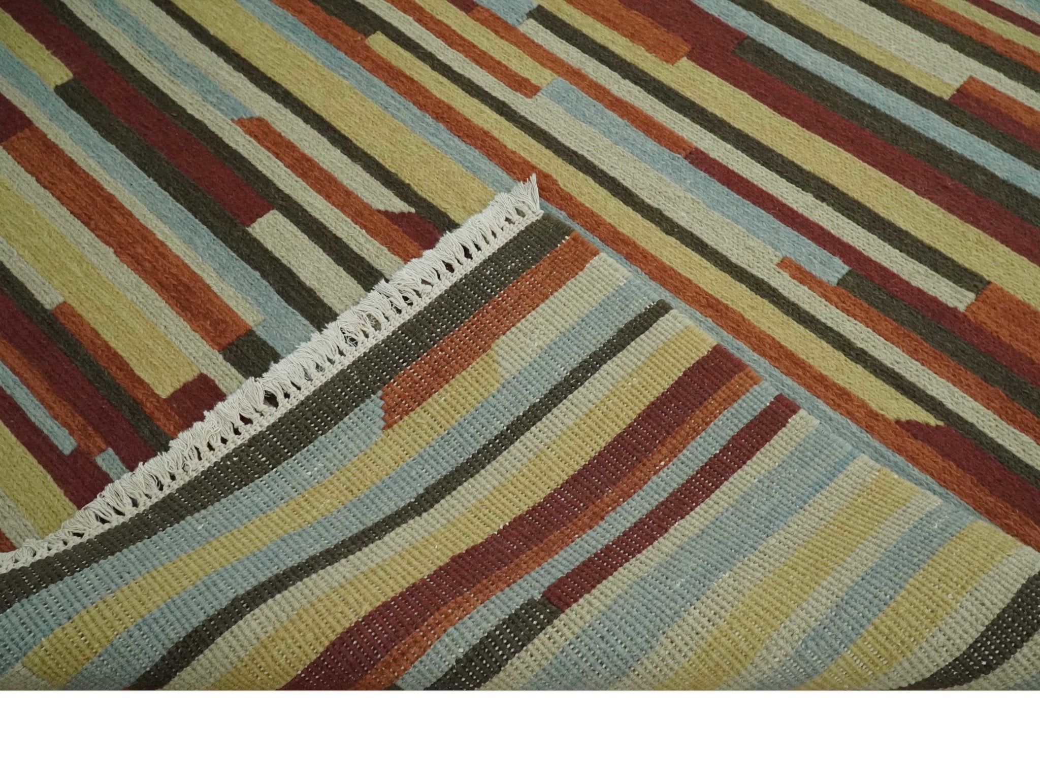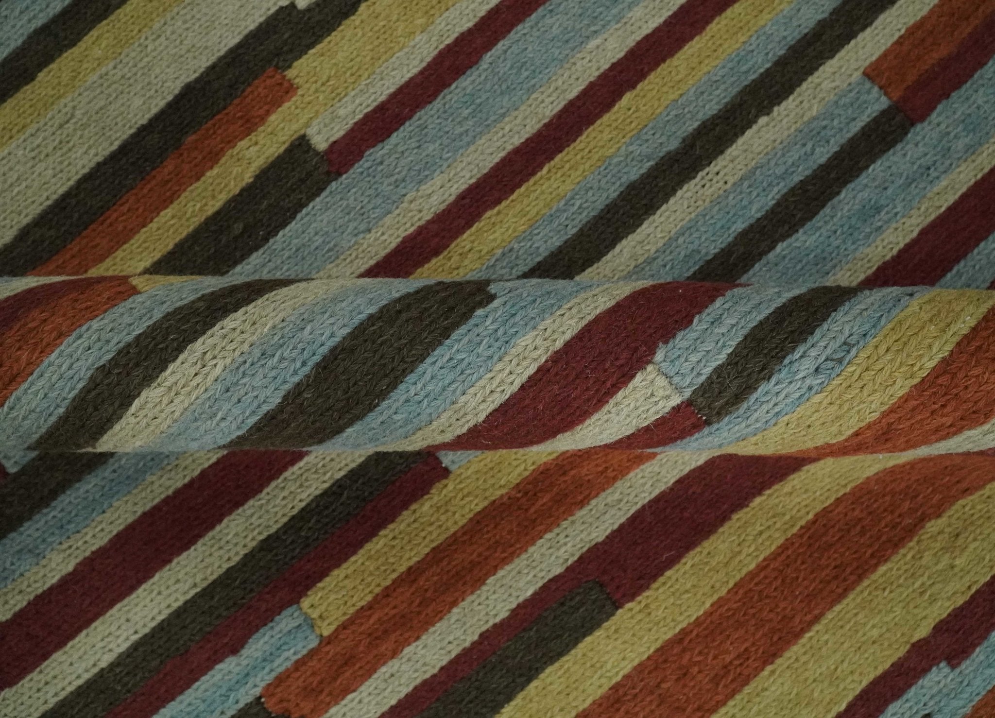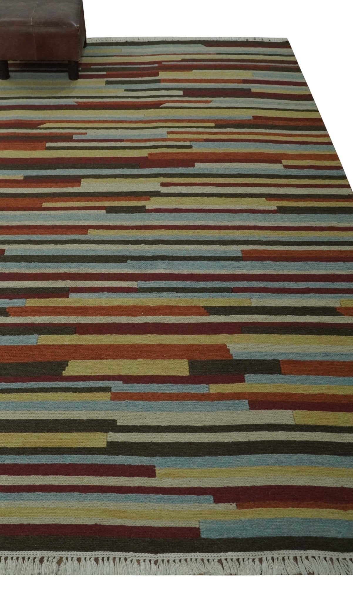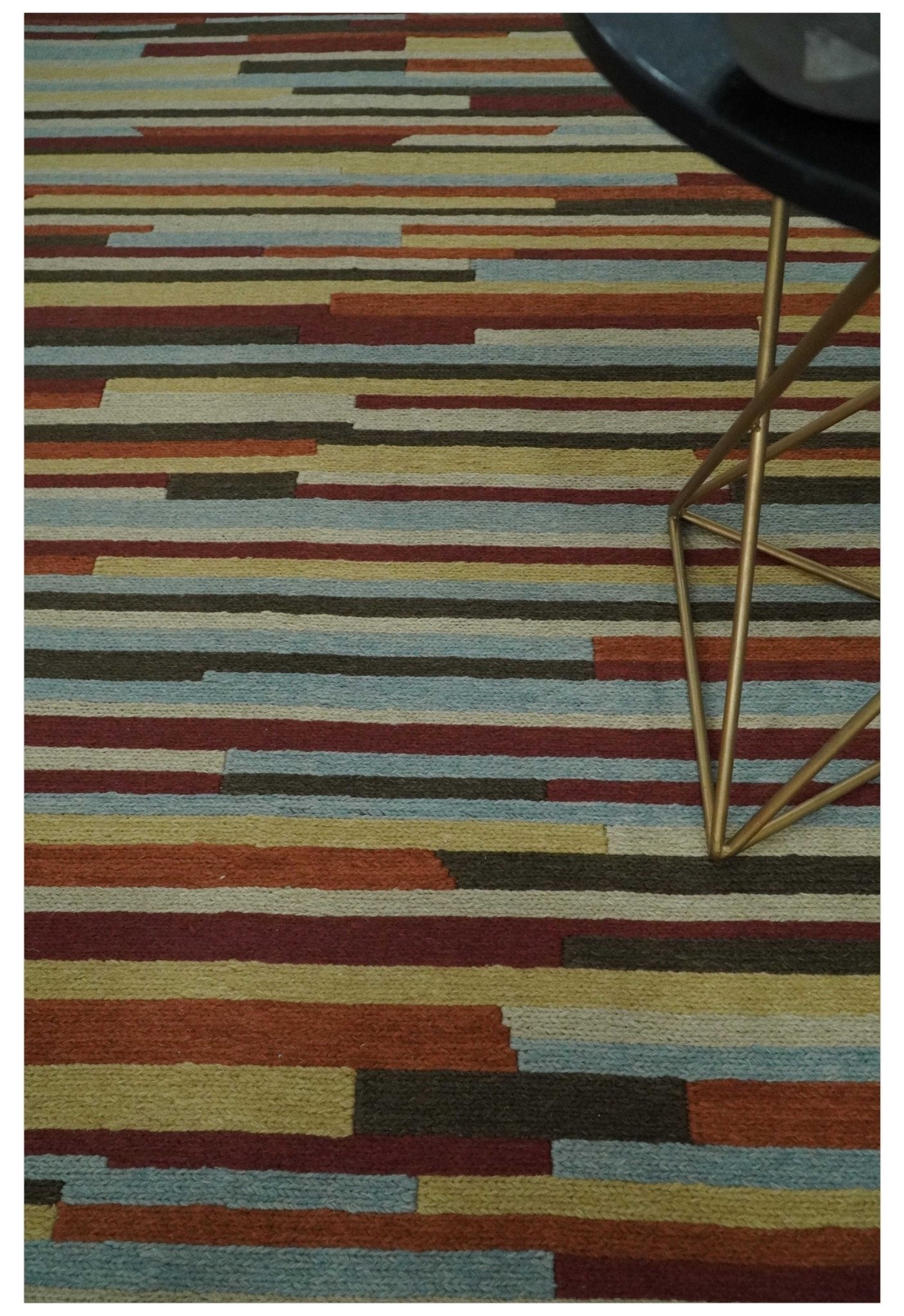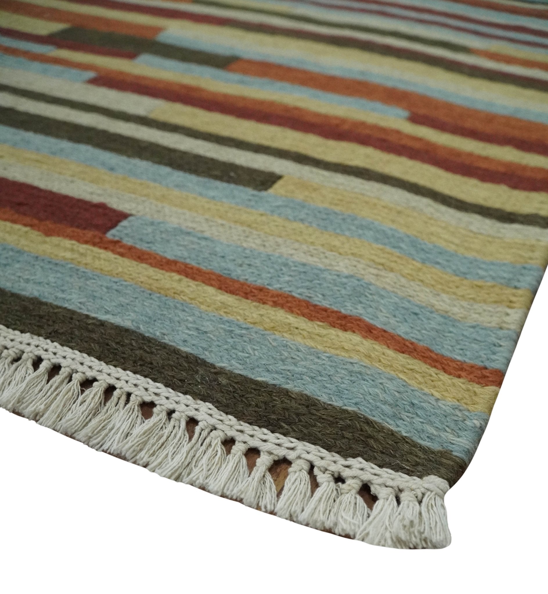 5x8 Multi color Stripes Pattern Hand knotted Farmhouse Wool Area Rug