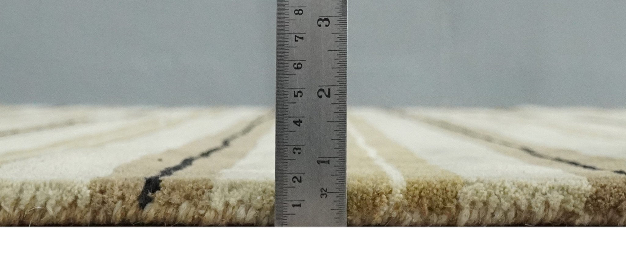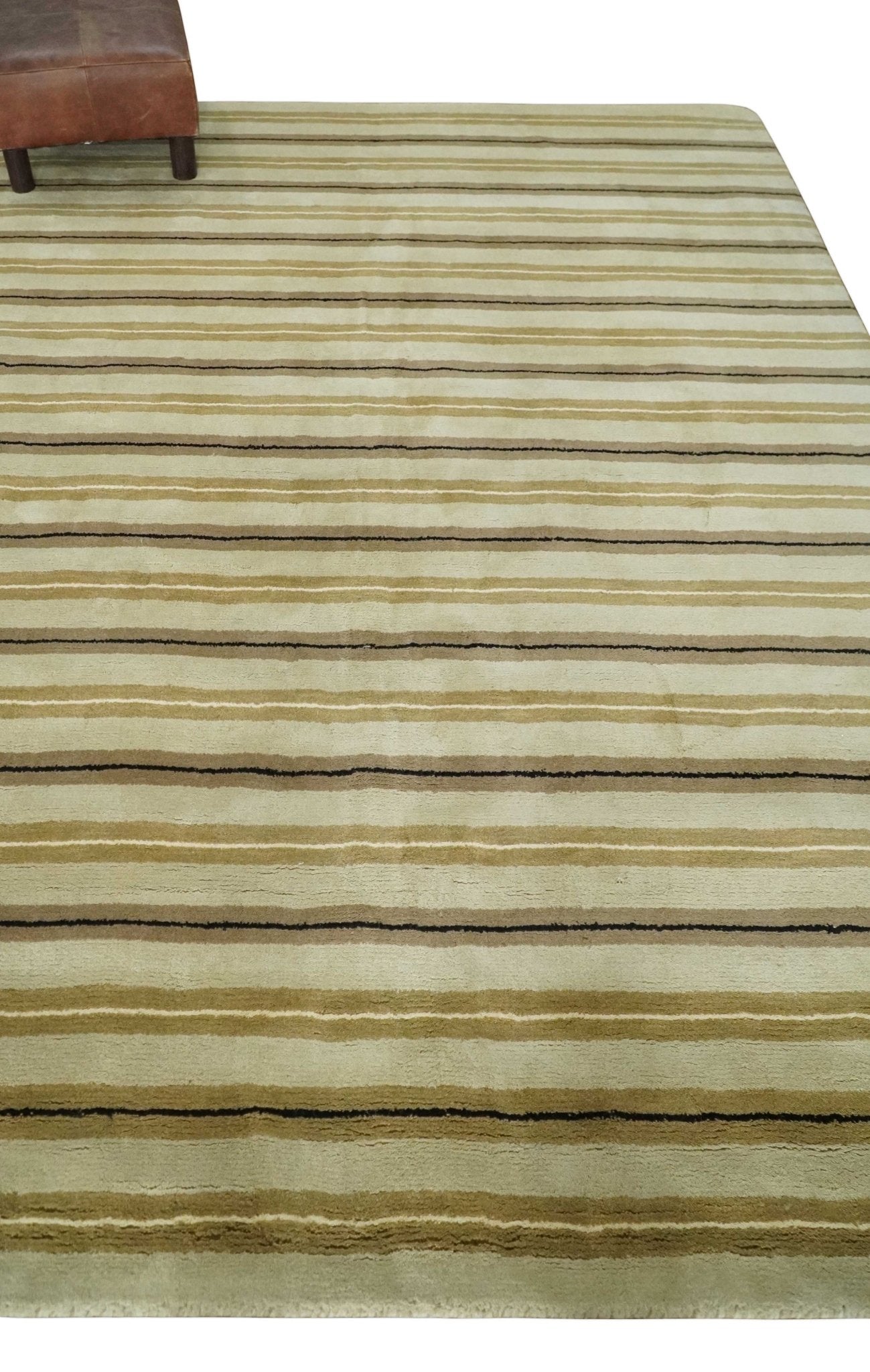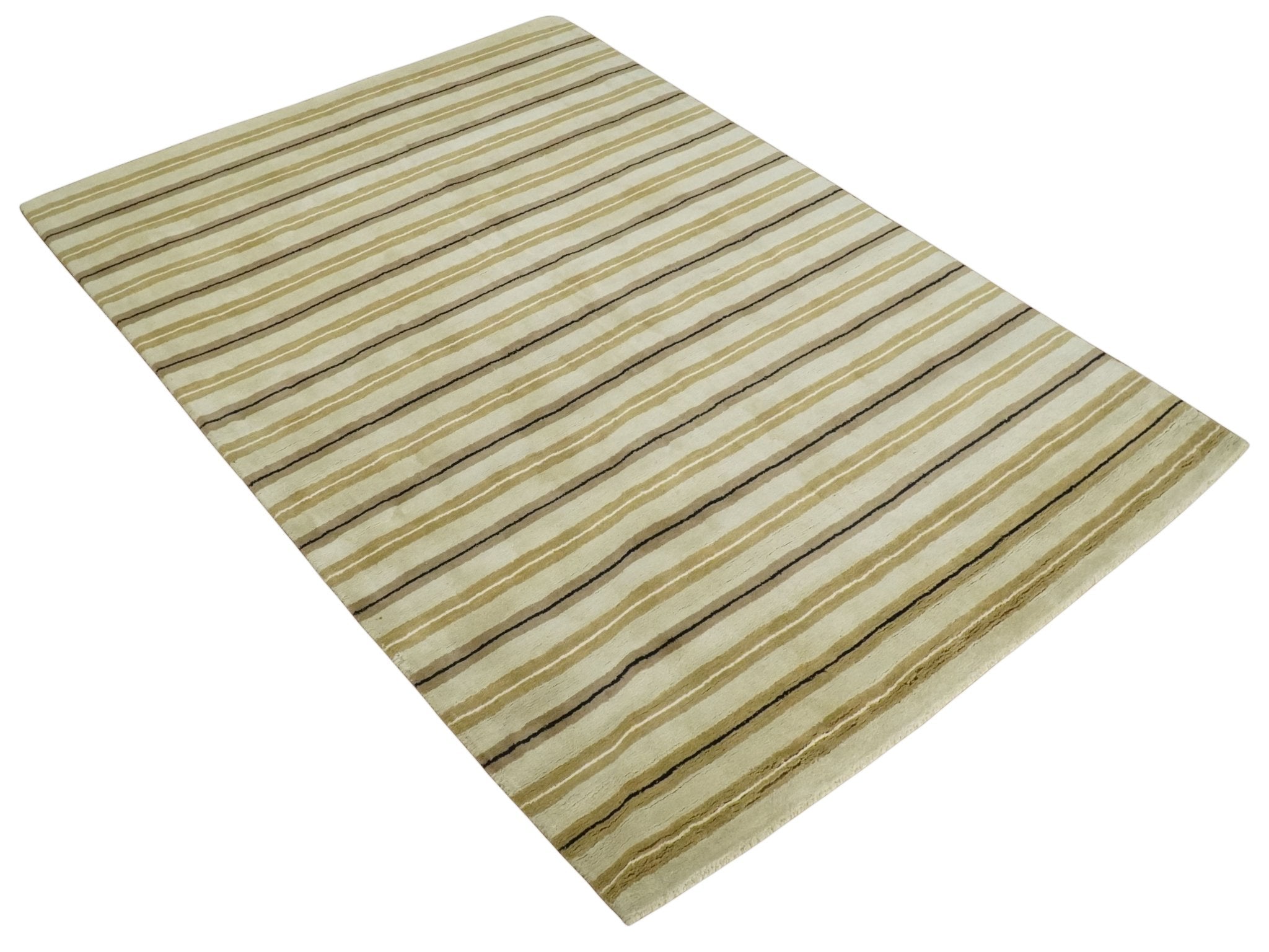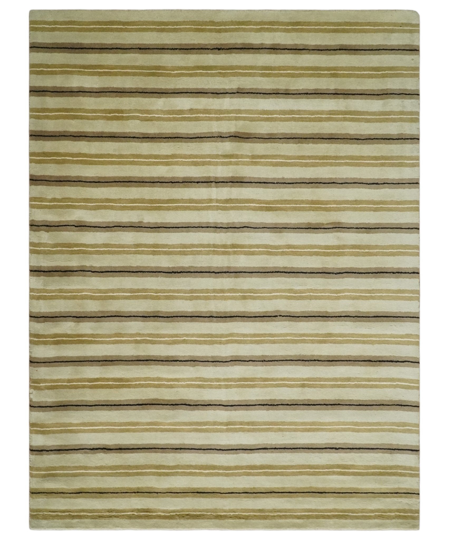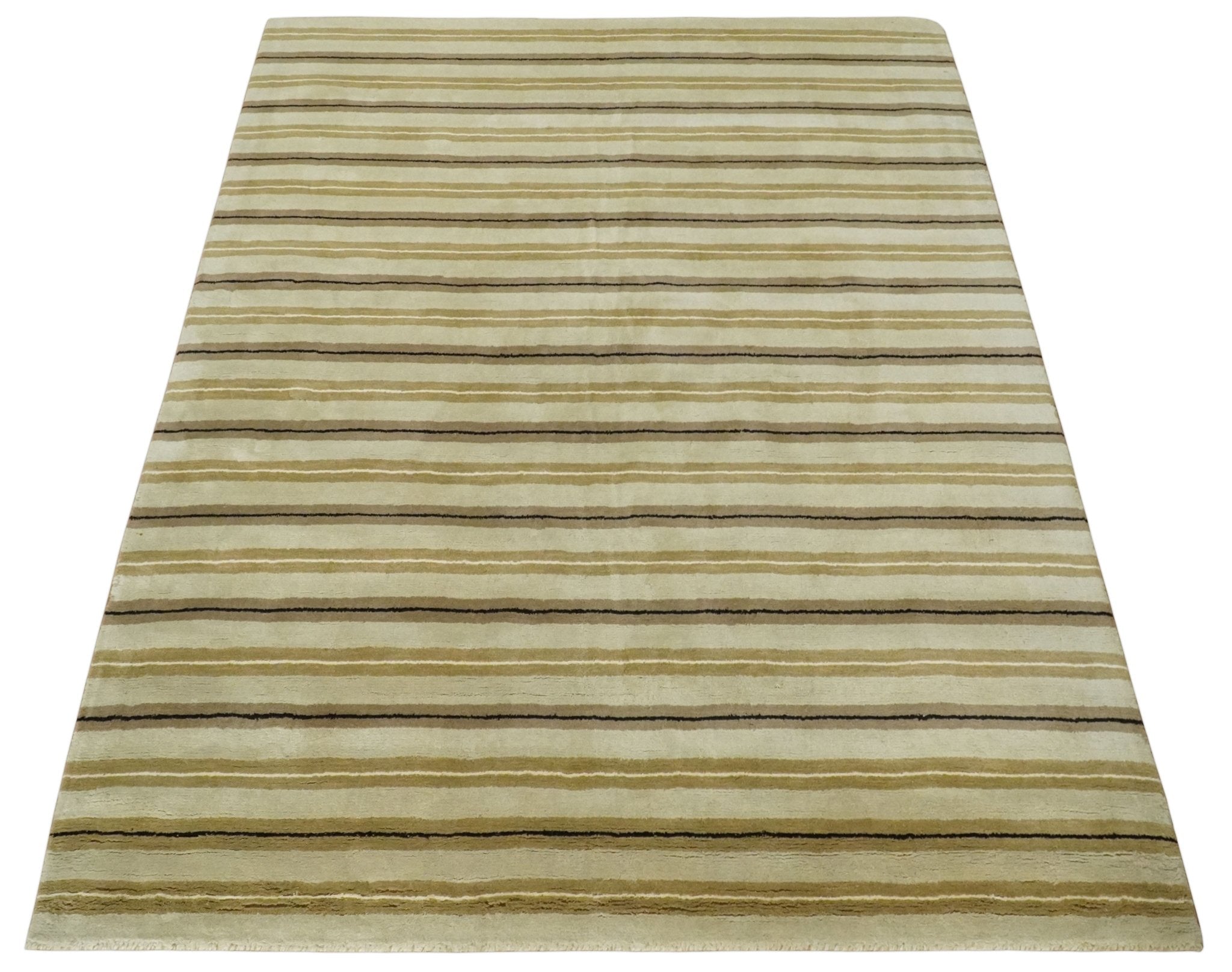 6x8 Beige, Olive and Brown Stripes Hand Tufted Wool Area Rug