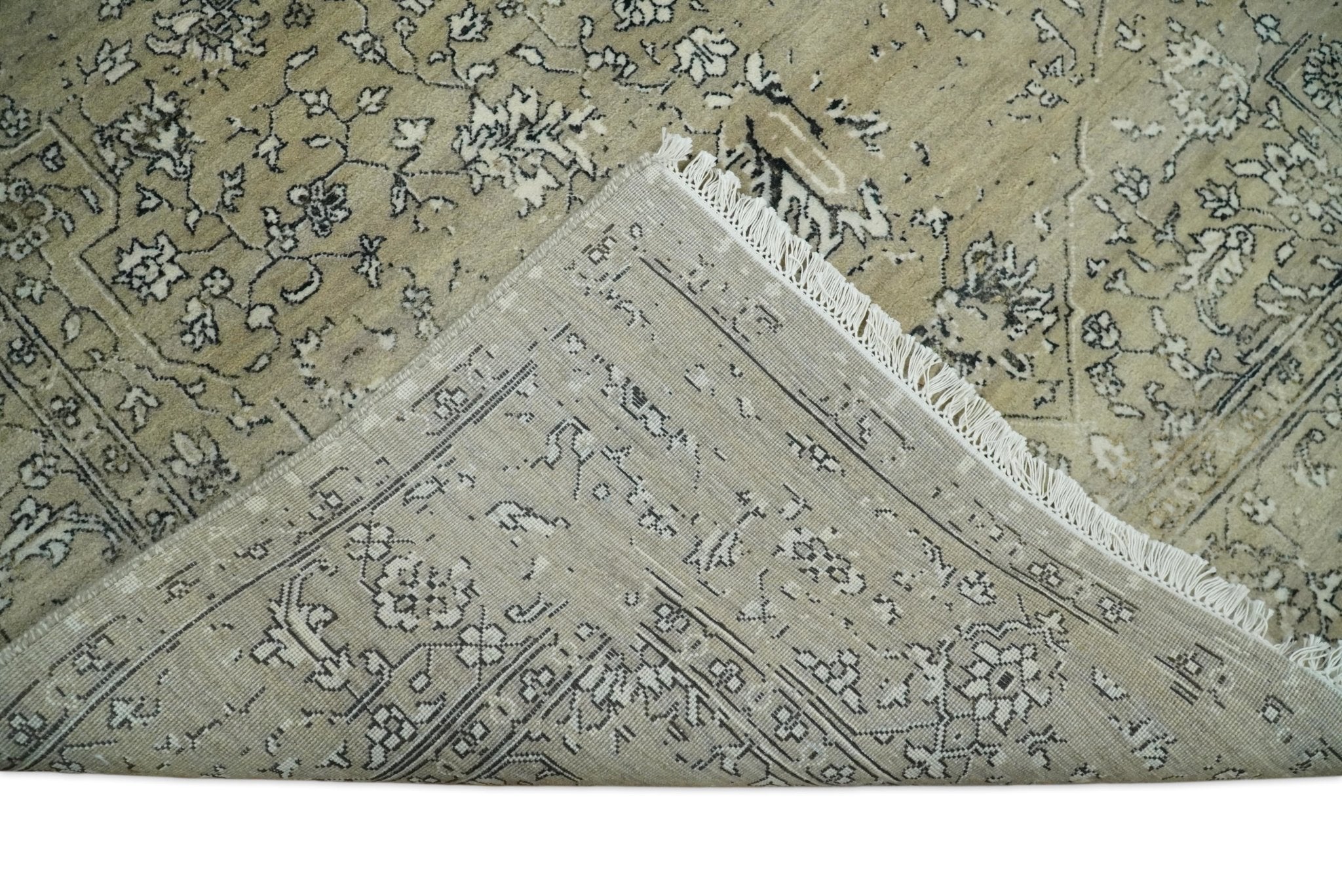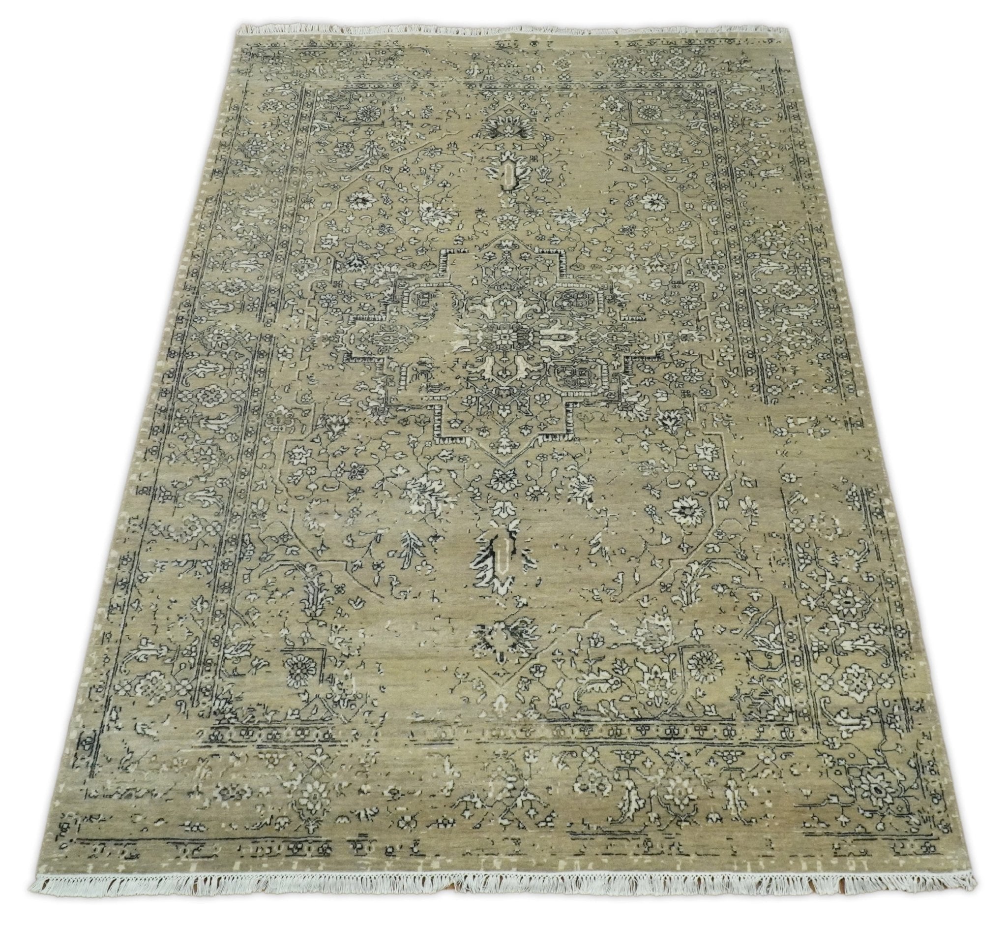 6x9 Fine Hand Knotted Beige and Black Traditional Vintage Persian Style Antique Wool Rug | AGR4