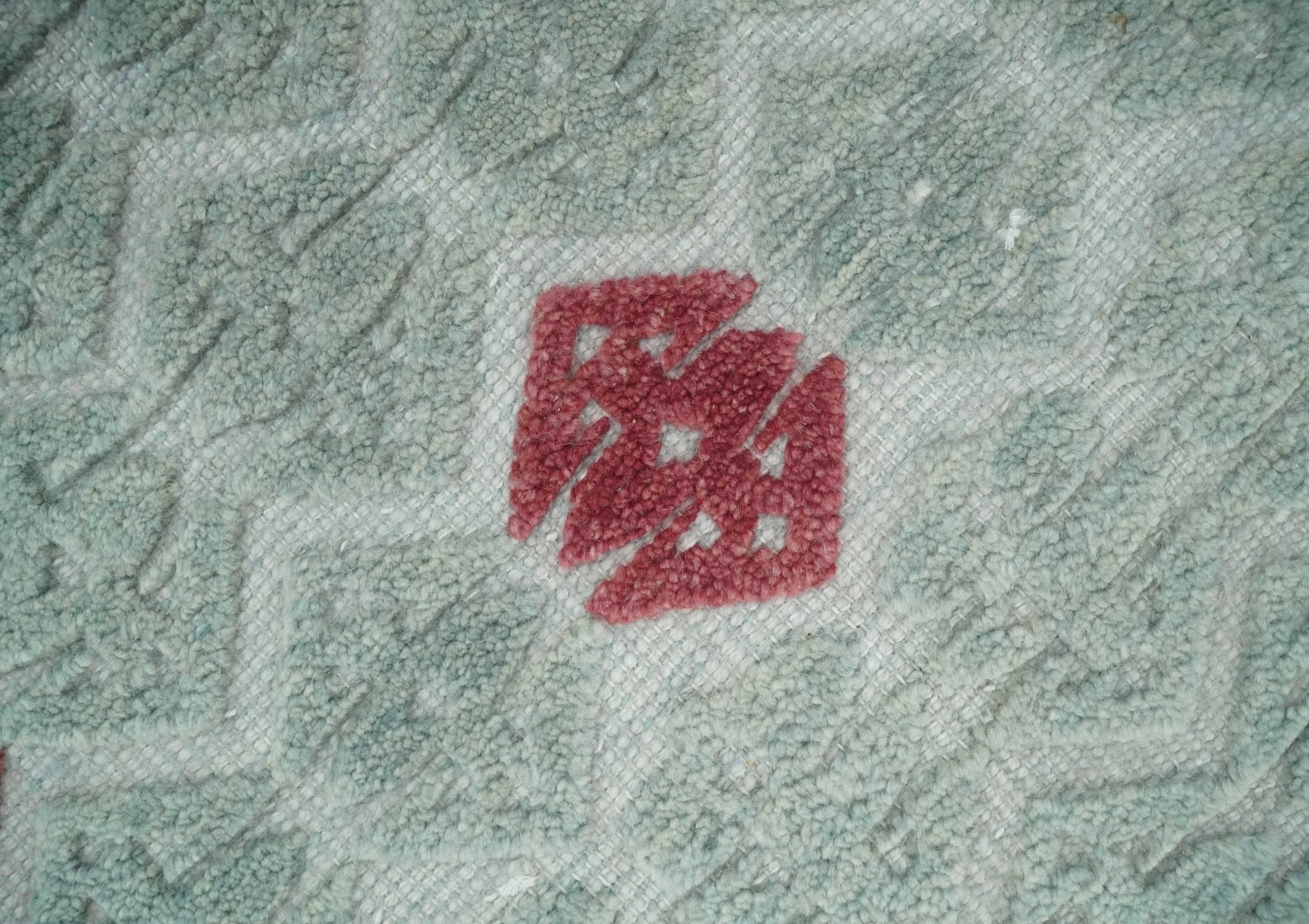 Oushak rugs have been made for centuries and carry a tradition and art. This specific rug is made in India, in the city of Bhadohi. Bhadohi is one of the biggest rug manufacturing cities. Carpet weaving in the region dates back to the 16th century during the reign of Akbar. The skilled artisans of Bhadohi have been carrying the tradition of rug-making for centuries.