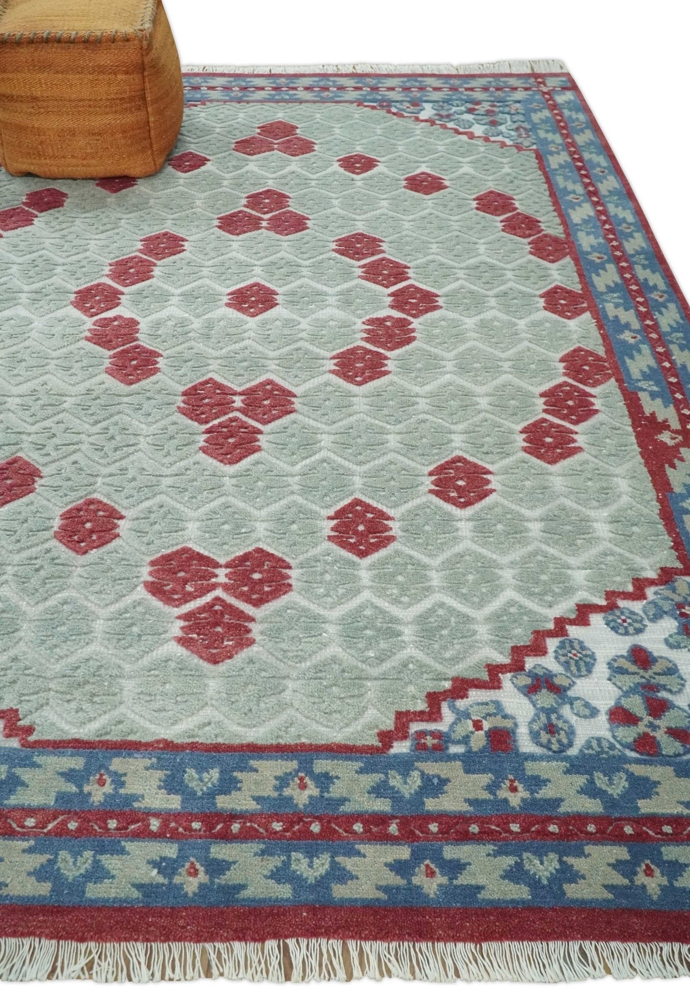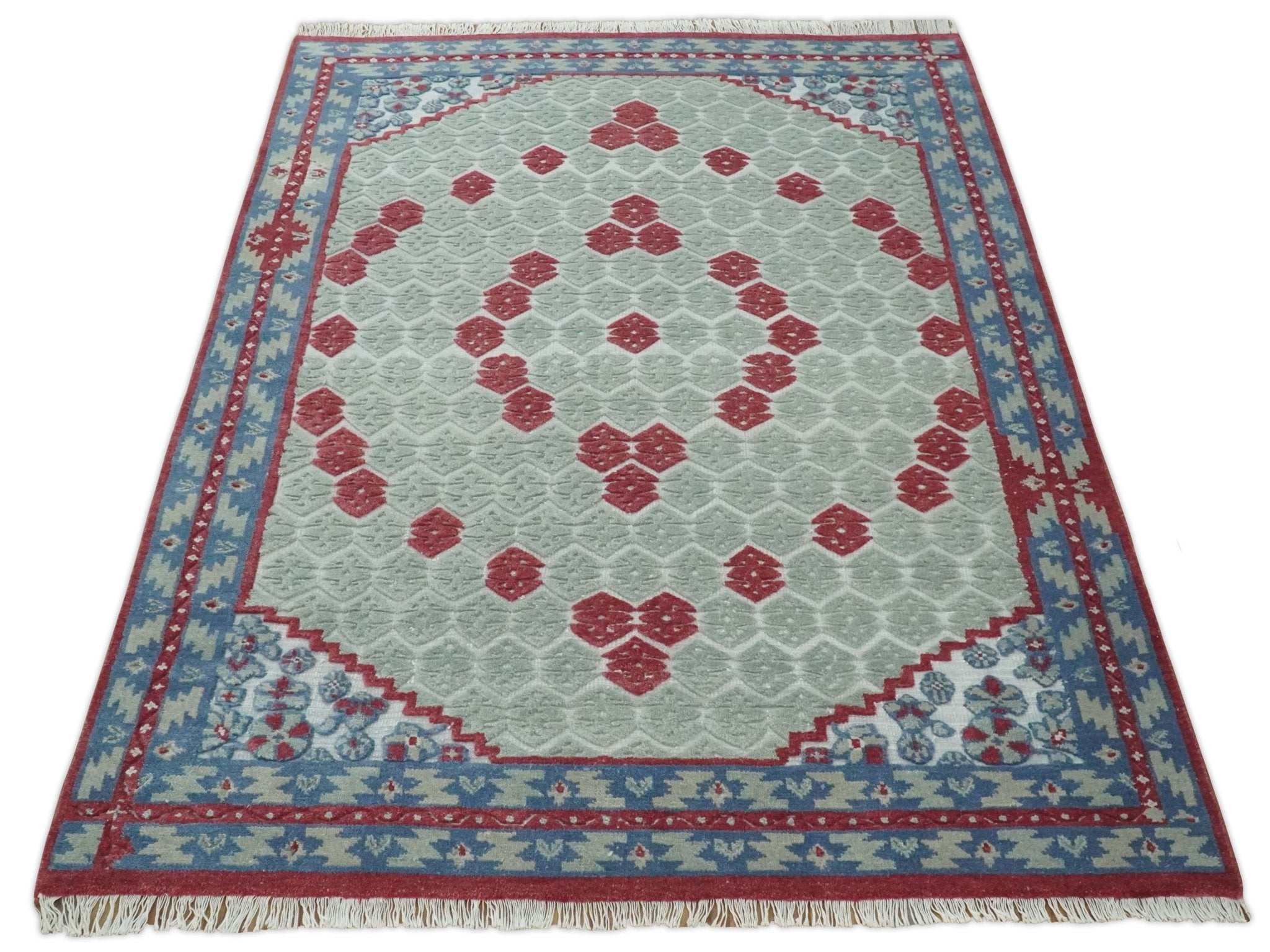 7x10 Hand Knotted Green, Red and Blue Traditional Persian Oushak Wool Rug | AC7710