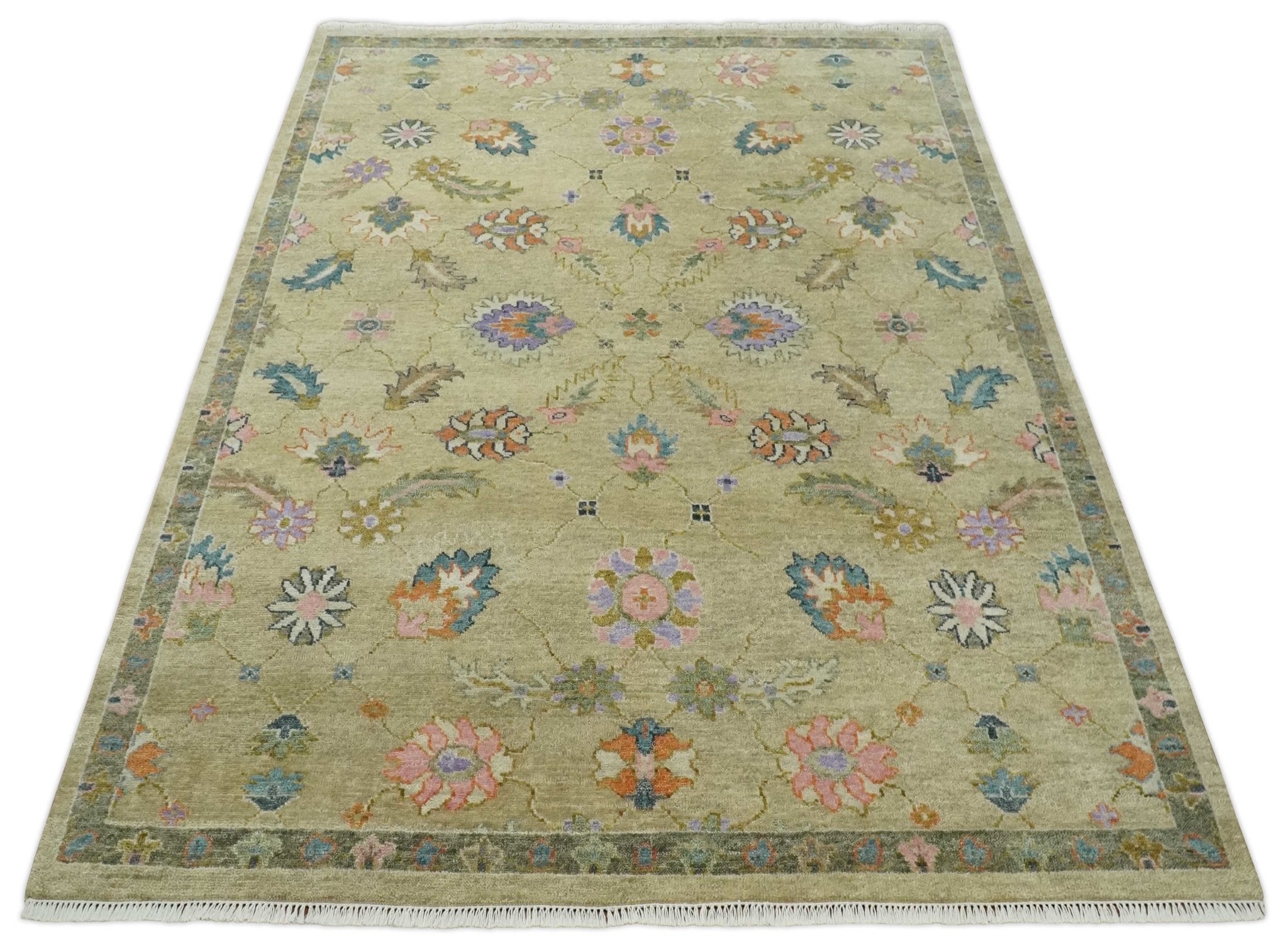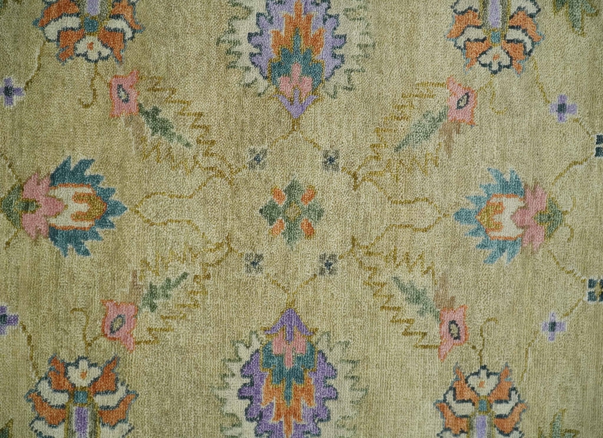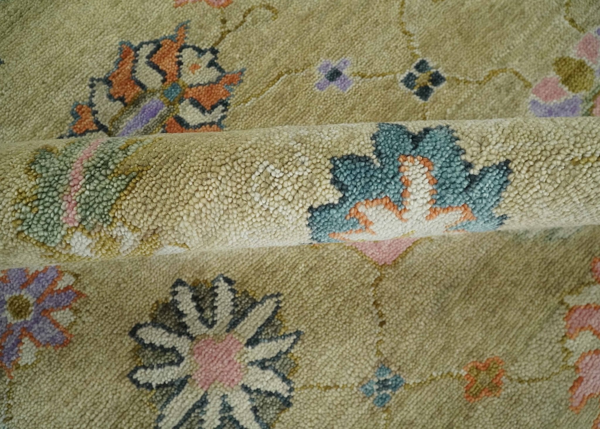 This Hand-Knotted Rug has been Made with Handspun Wool. The beautiful colors of the rug carry a legacy of the famous Oushak rug, the traditional design of the rug completes your space without making it look busy. Hand-Knotted rugs are durable and can last for decades if treated right.