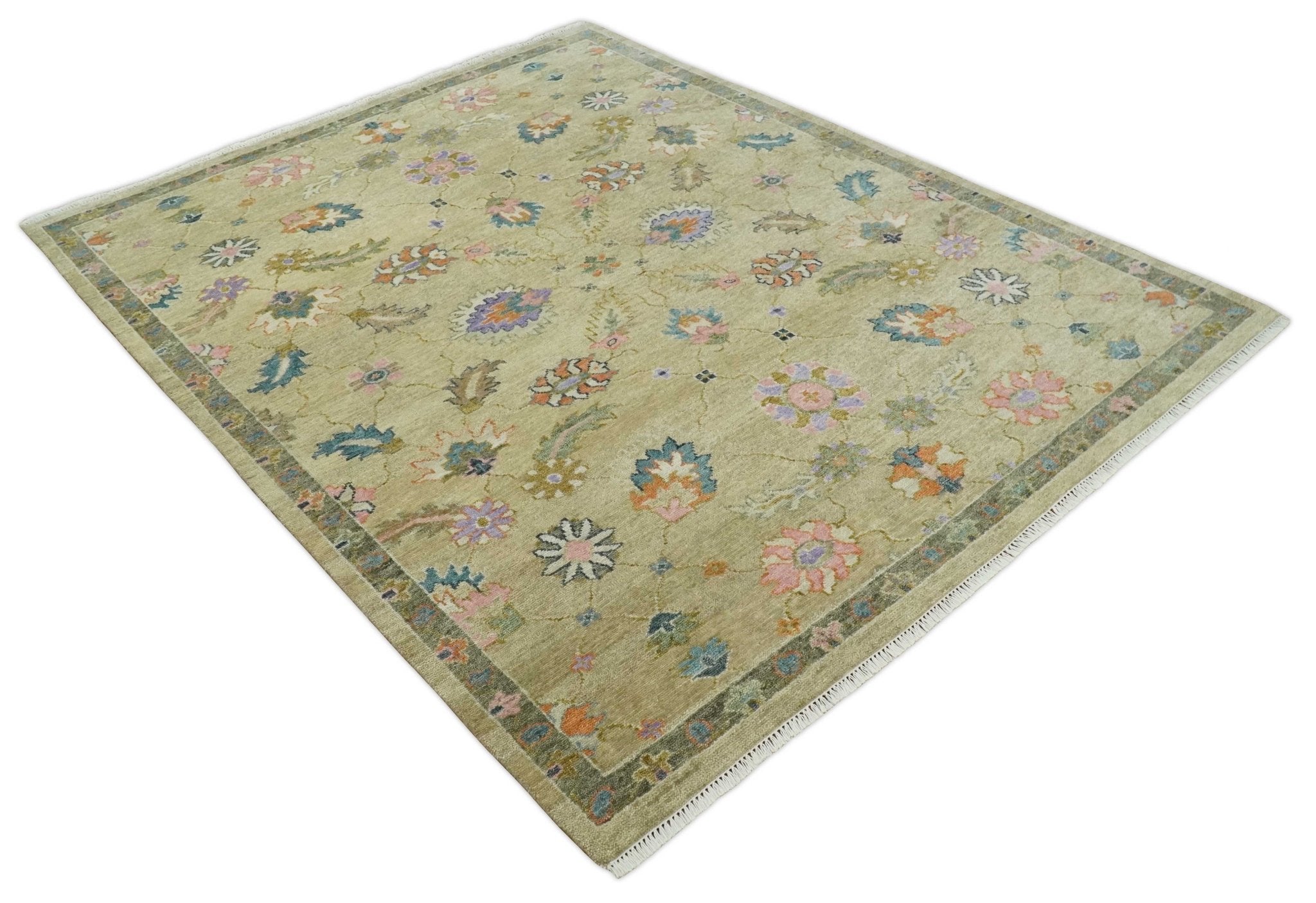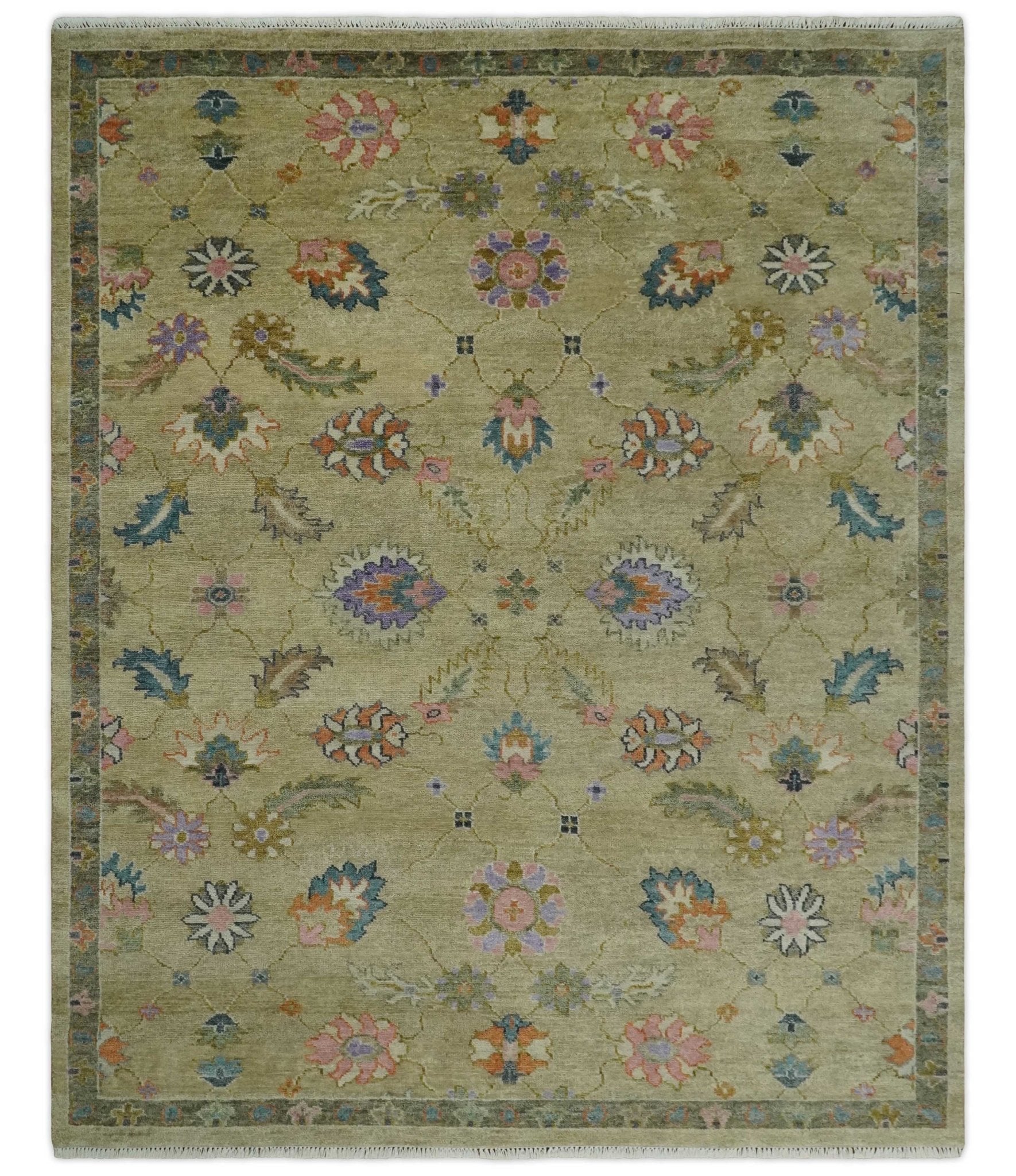 8x10 Hand Knotted Brown and Olive Traditional Vintage Persian Oushak Antique Wool Rug | TRDCP962810