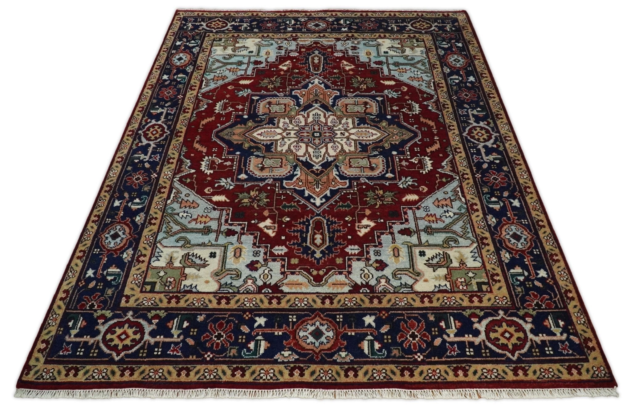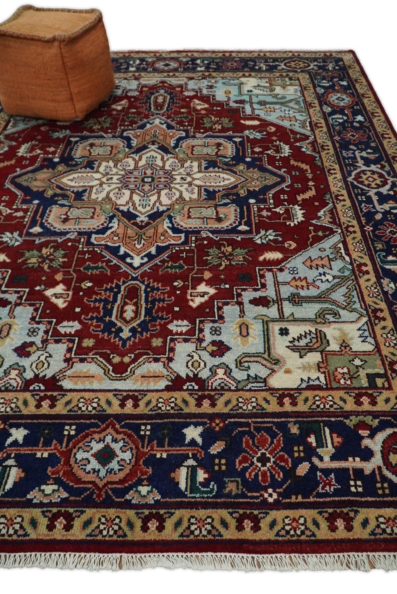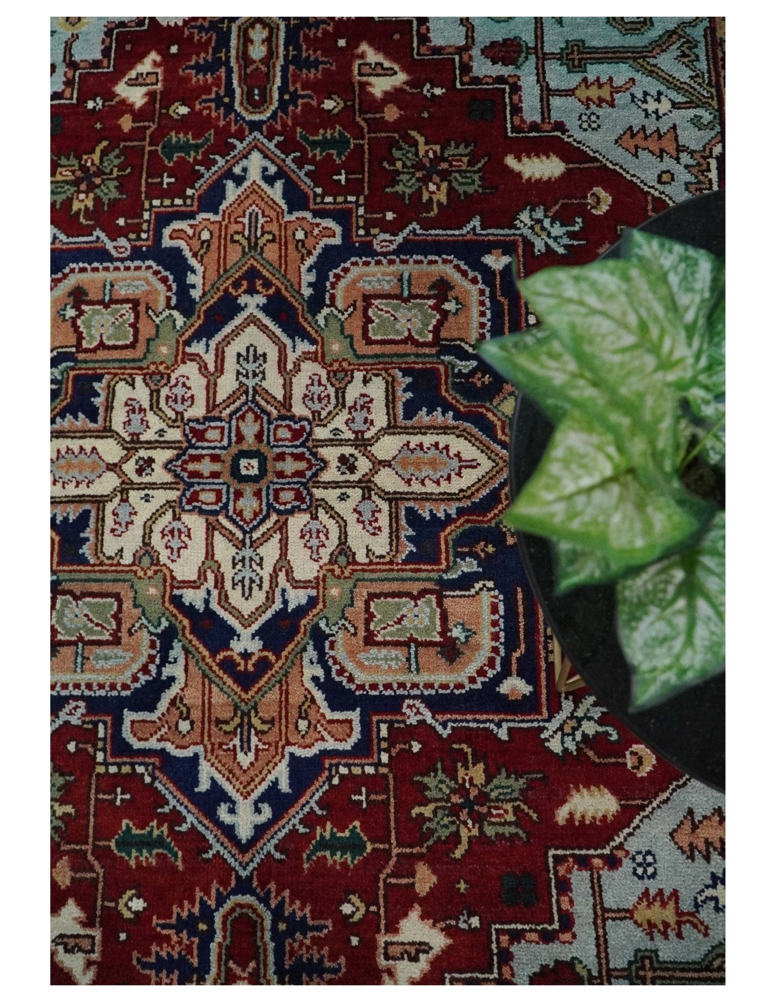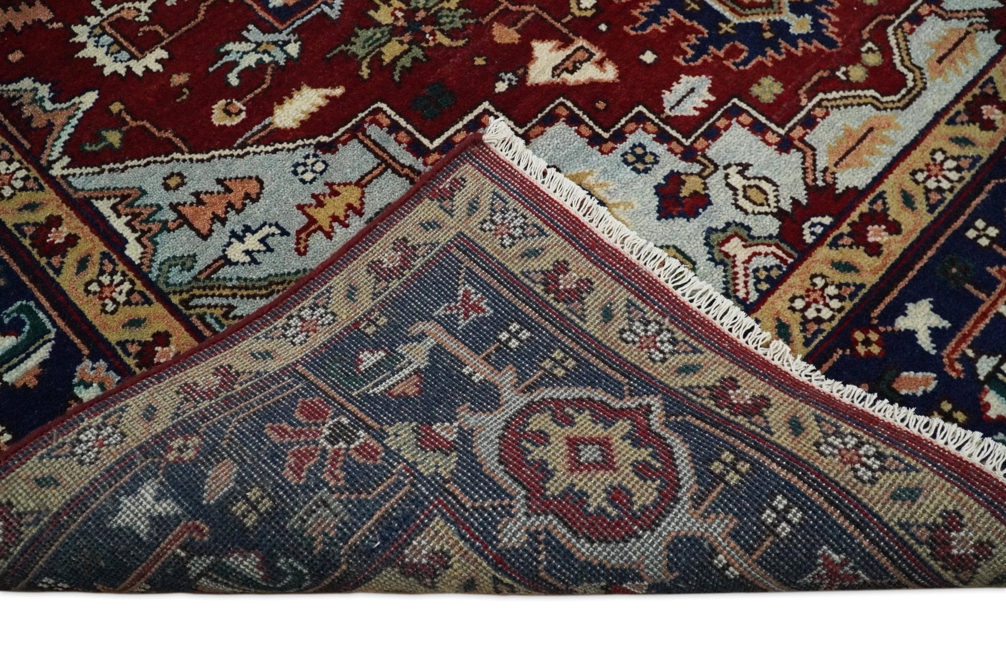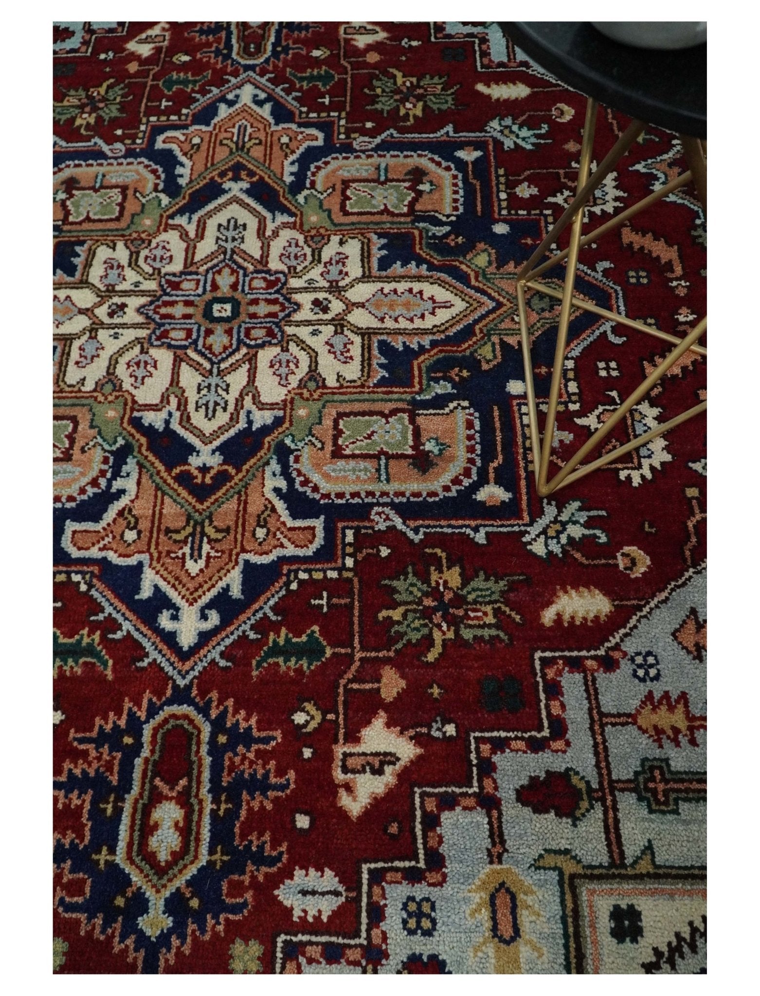 8x10 Hand Knotted Rust and Blue Traditional Vintage Persian Heriz Serapi Antique Wool Rug | TRDCP575810