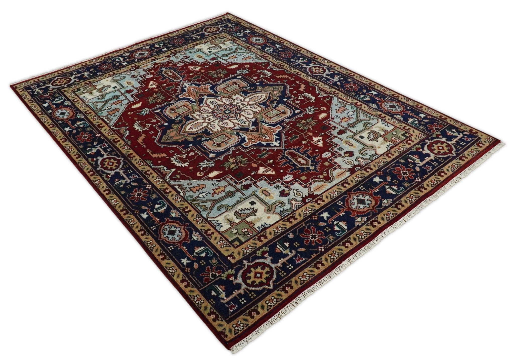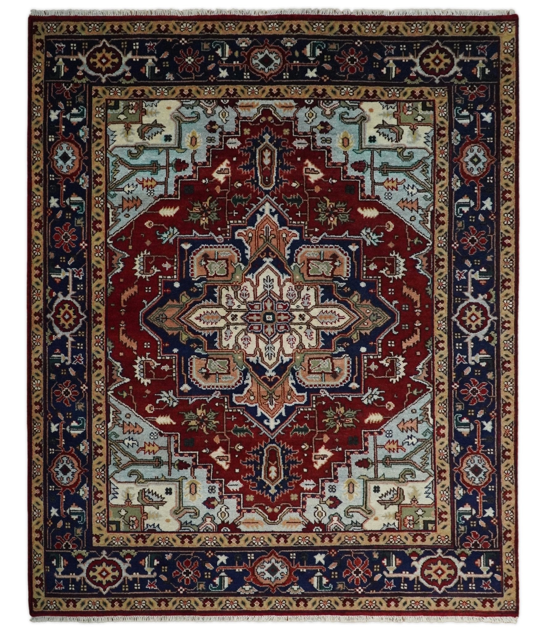• Fine Hand-Knotted 8 feet by 10 feet Serapi Rug