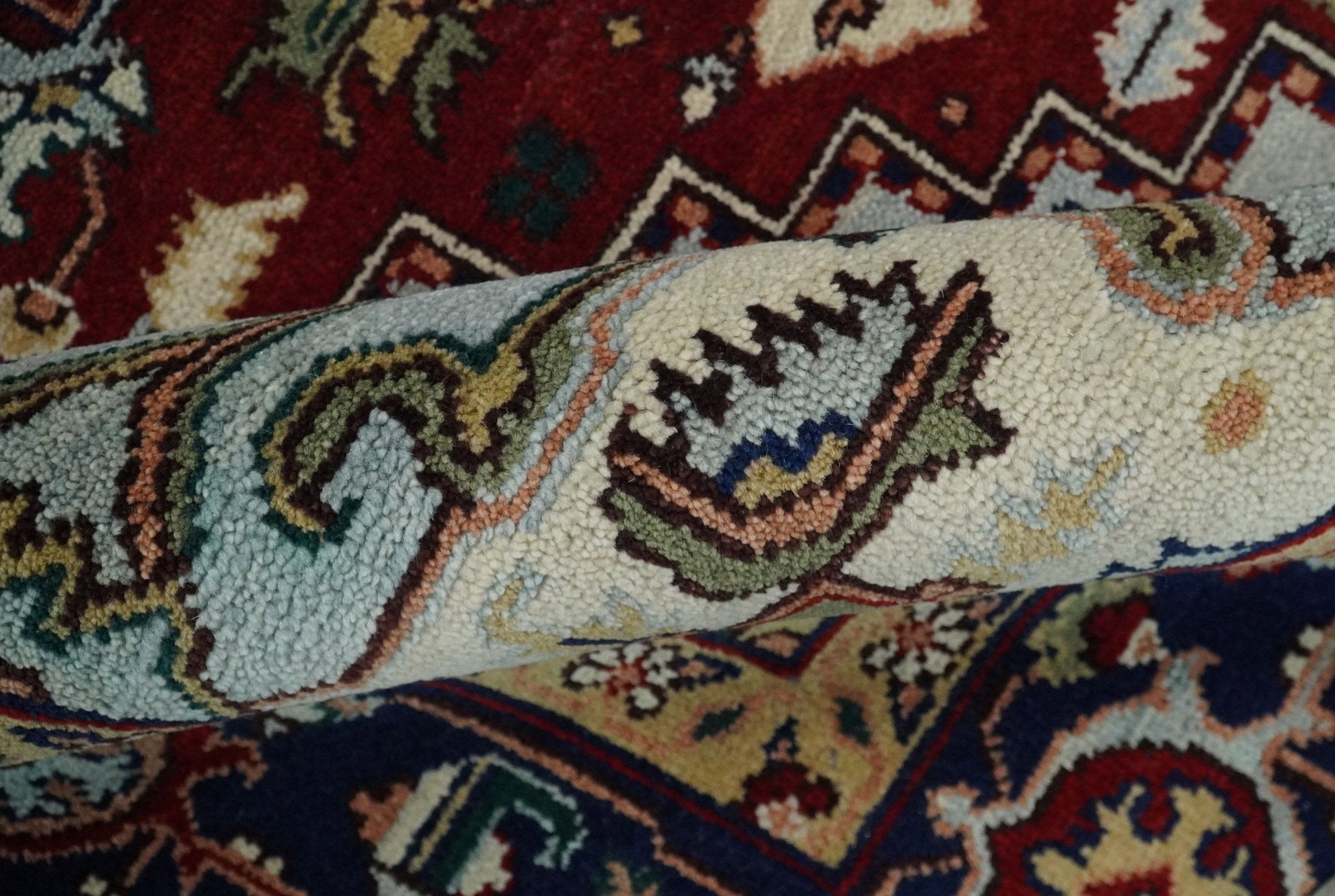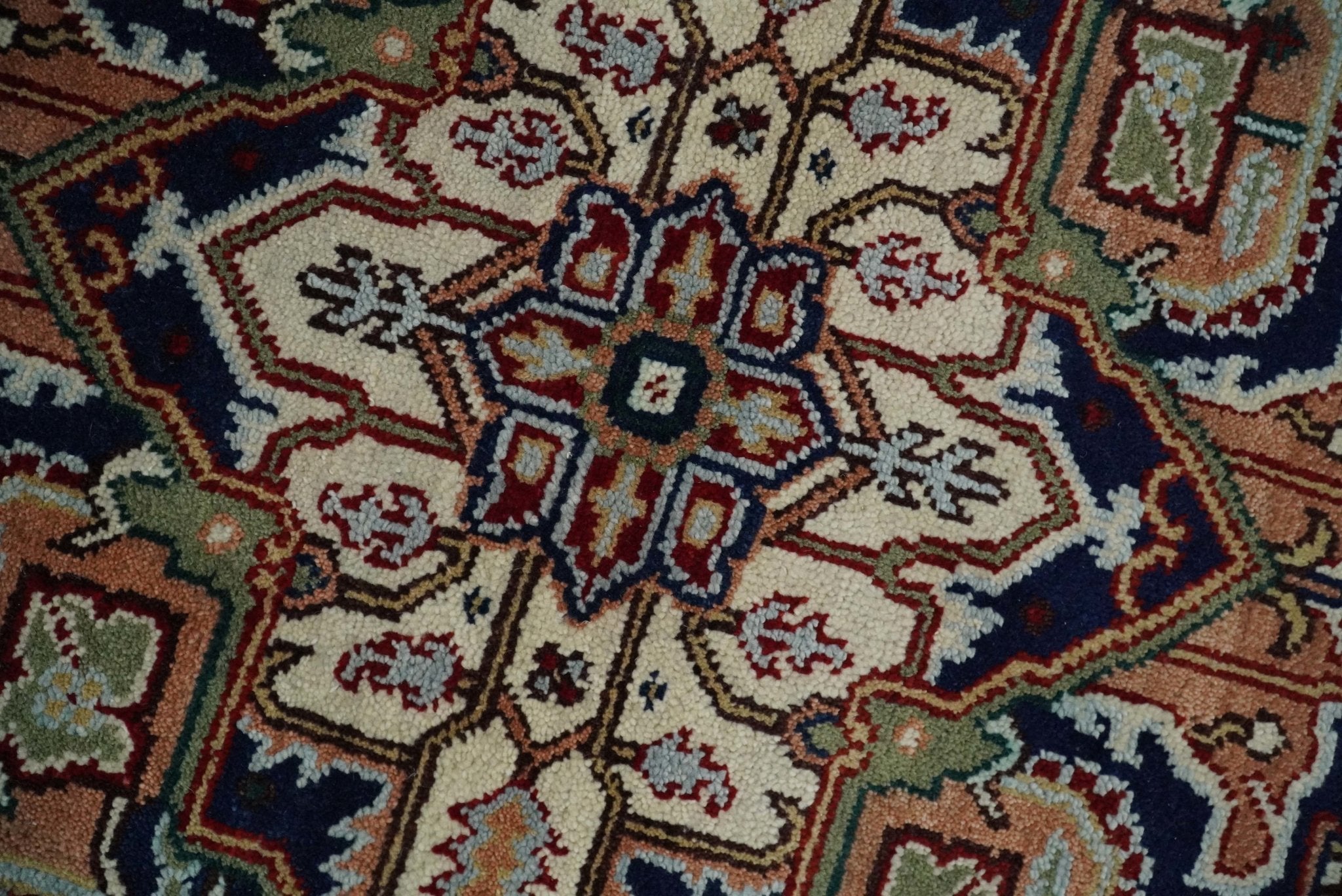 This Hand-Knotted Rug has been Made with Handspun Wool. The beautiful colors of the rug carry a legacy of the famous Heriz rug, the traditional design of the rug completes your space without making it look busy. Hand-Knotted rugs are durable and can last for decades if treated right.