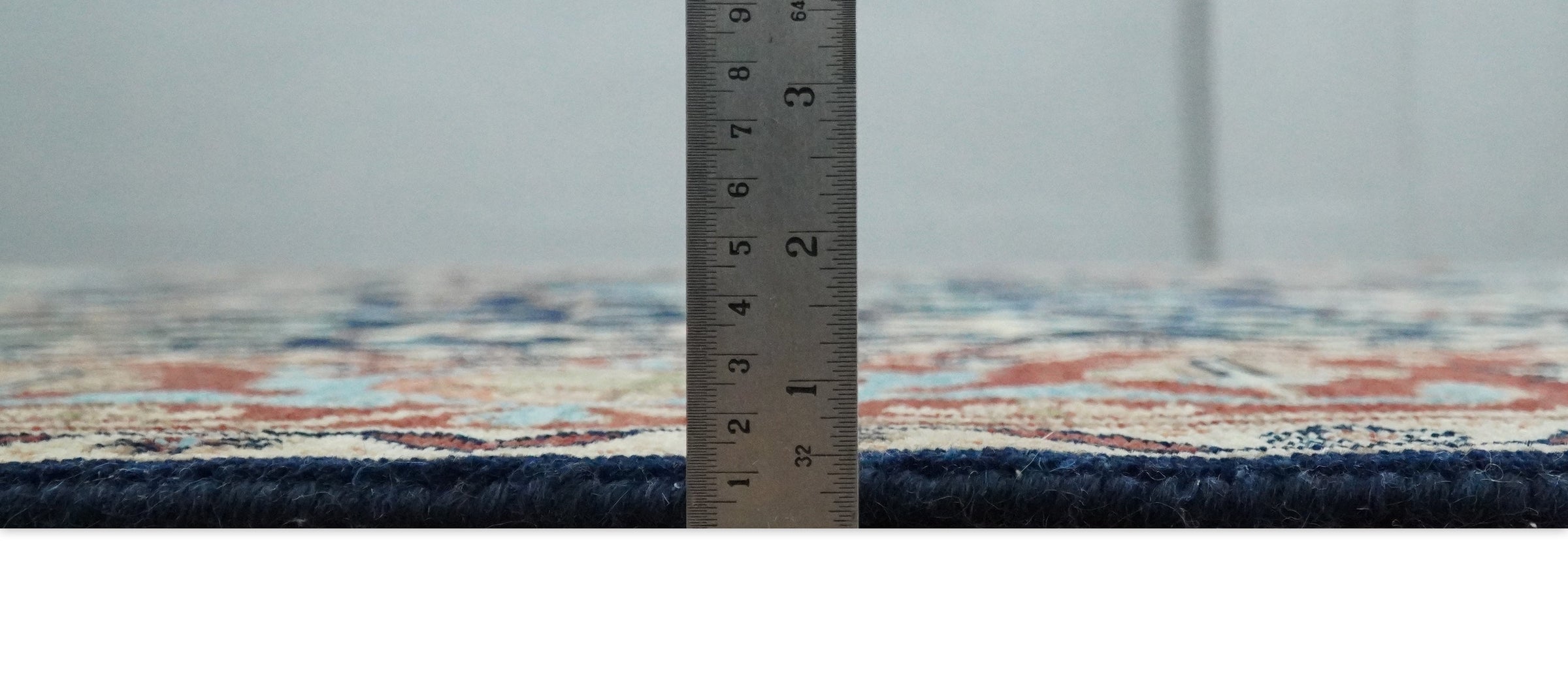 This specific rug is made in India, in the city of Bhadohi. Bhadohi is one of the biggest rug manufacturing cities. Carpet weaving in the region dates back to the 16th century during the reign of Akbar. The skilled artisans of Bhadohi have been carrying the tradition of rug-making for centuries.