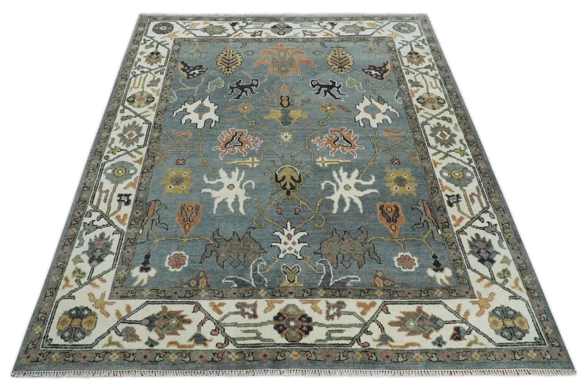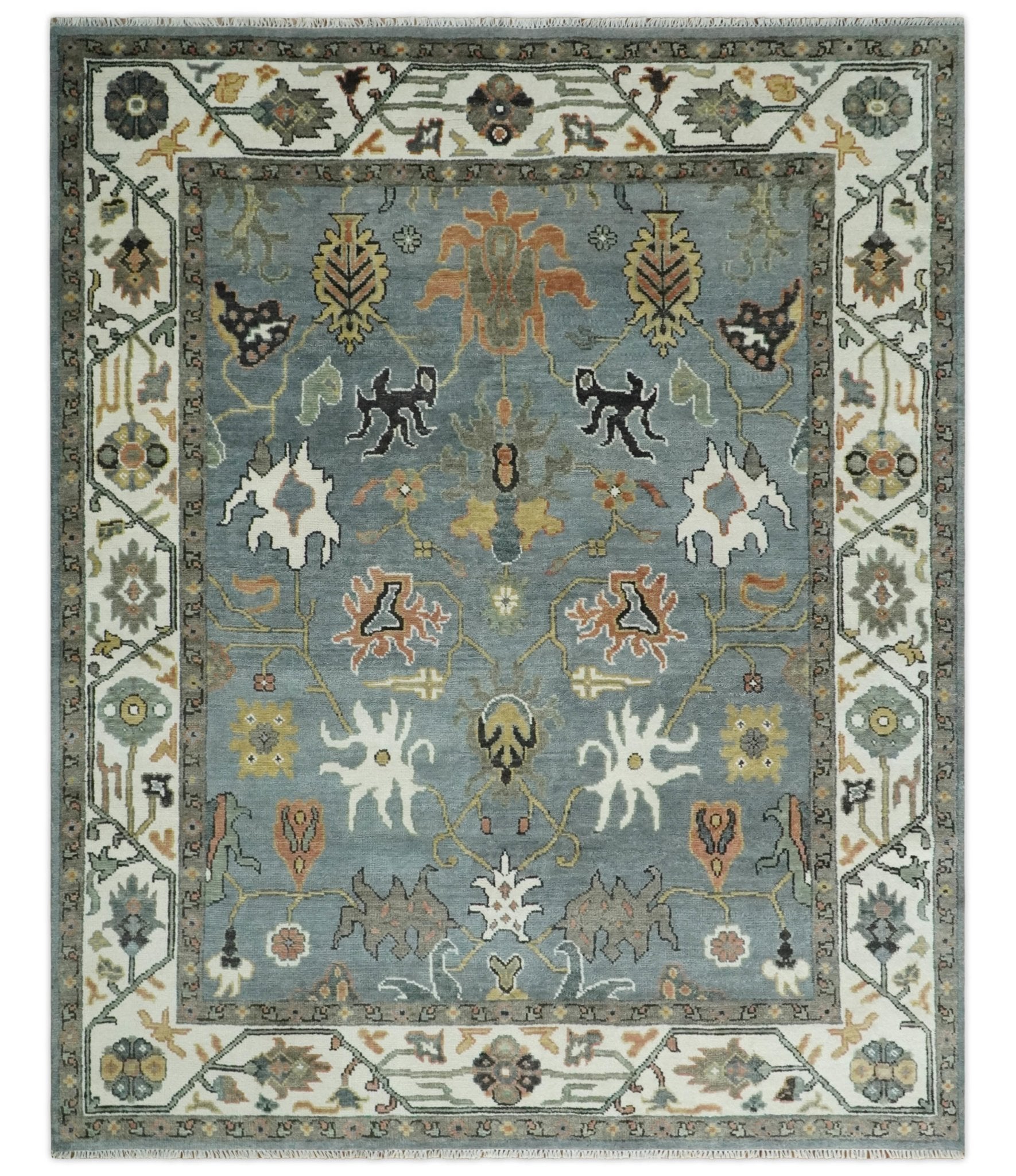 8x10 Wool Traditional Ivory and Gray Vibrant Colorful Hand knotted Oushak Area Rug | TRDCP1304810