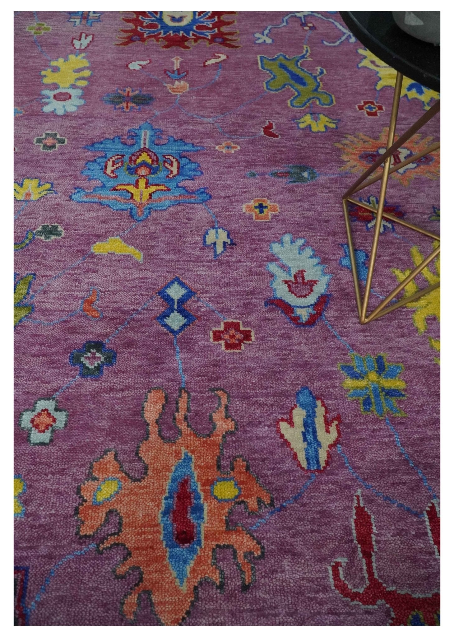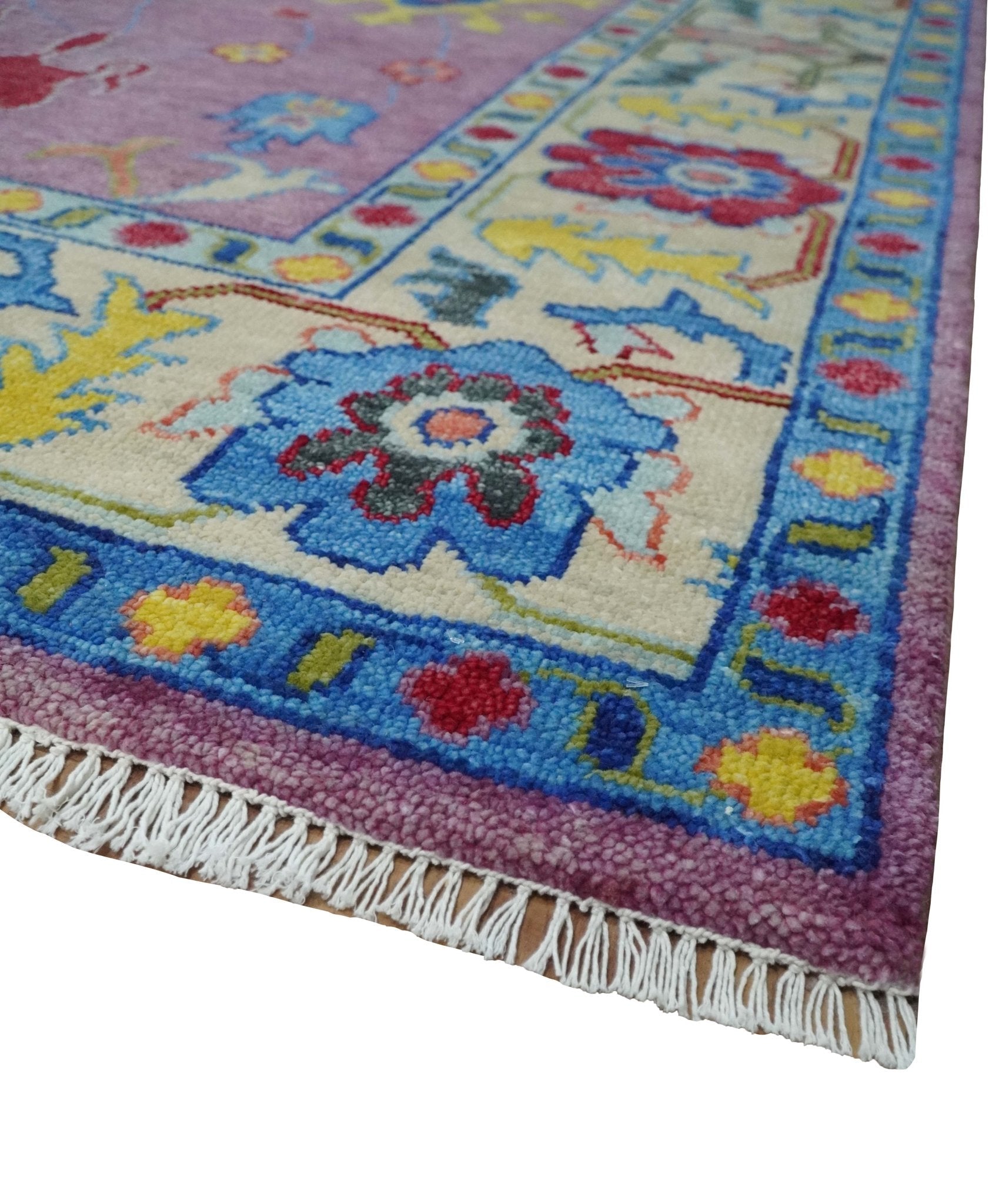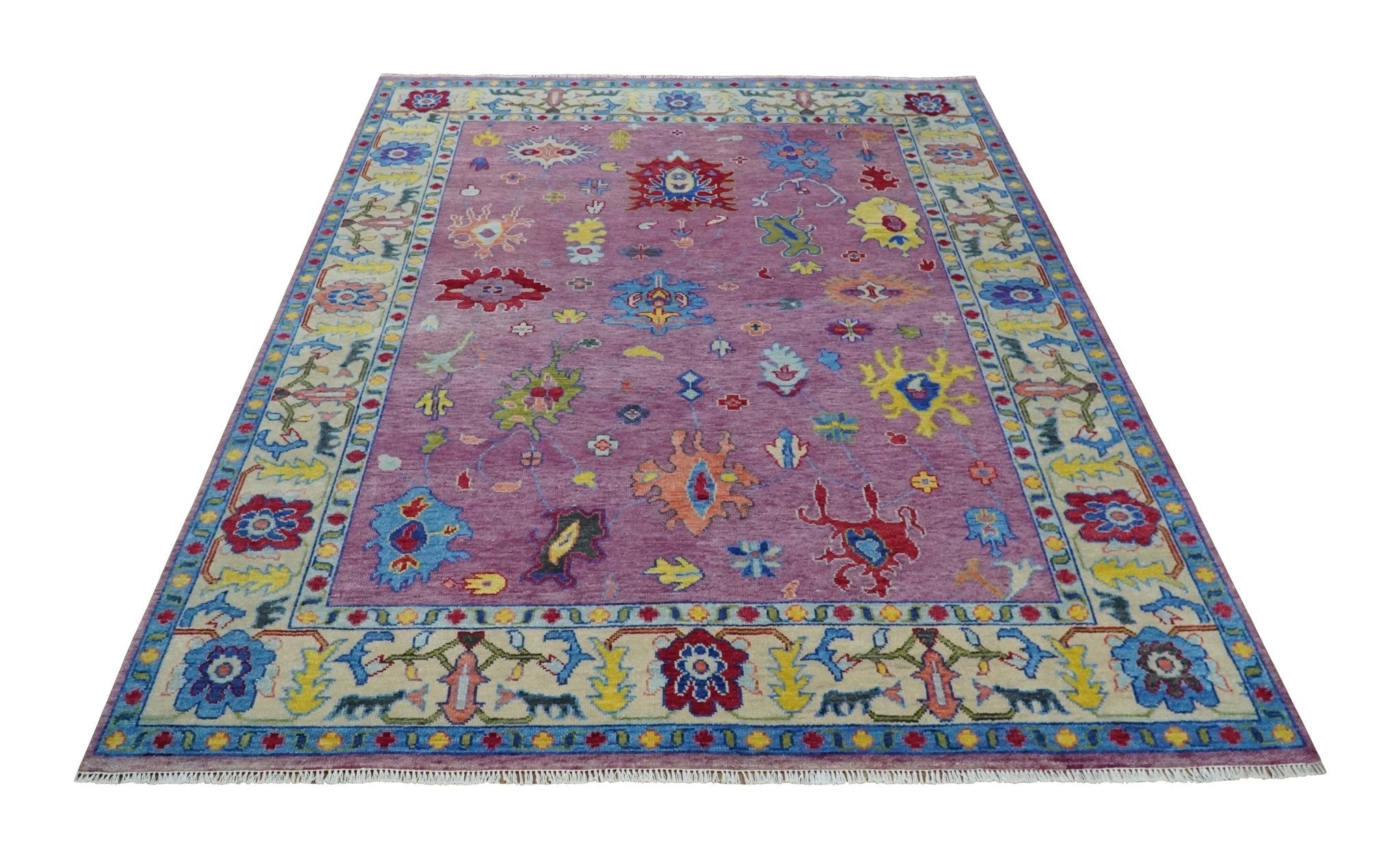 9x12 Antique Hand Knotted Purple, Beige and Blue Traditional Vintage Oushak Wool Rug | TRDCP1352912