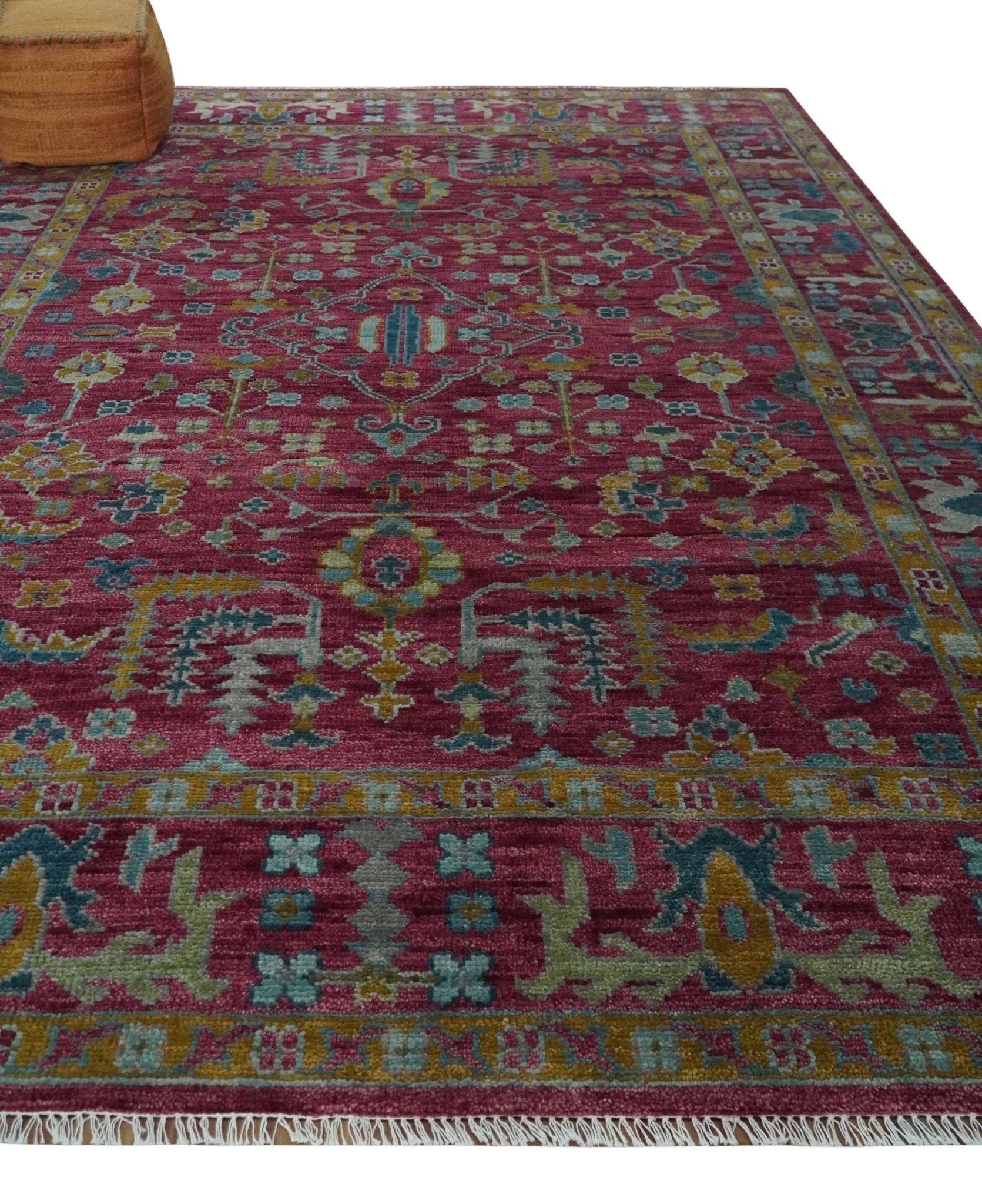 This Hand-Knotted Rug has been Made with Handspun Wool. The beautiful colors of the rug carry a legacy of the heirloom rug. The traditional design of the rug completes your space without making it look busy. Hand-Knotted rugs are durable and can last for decades if treated right.