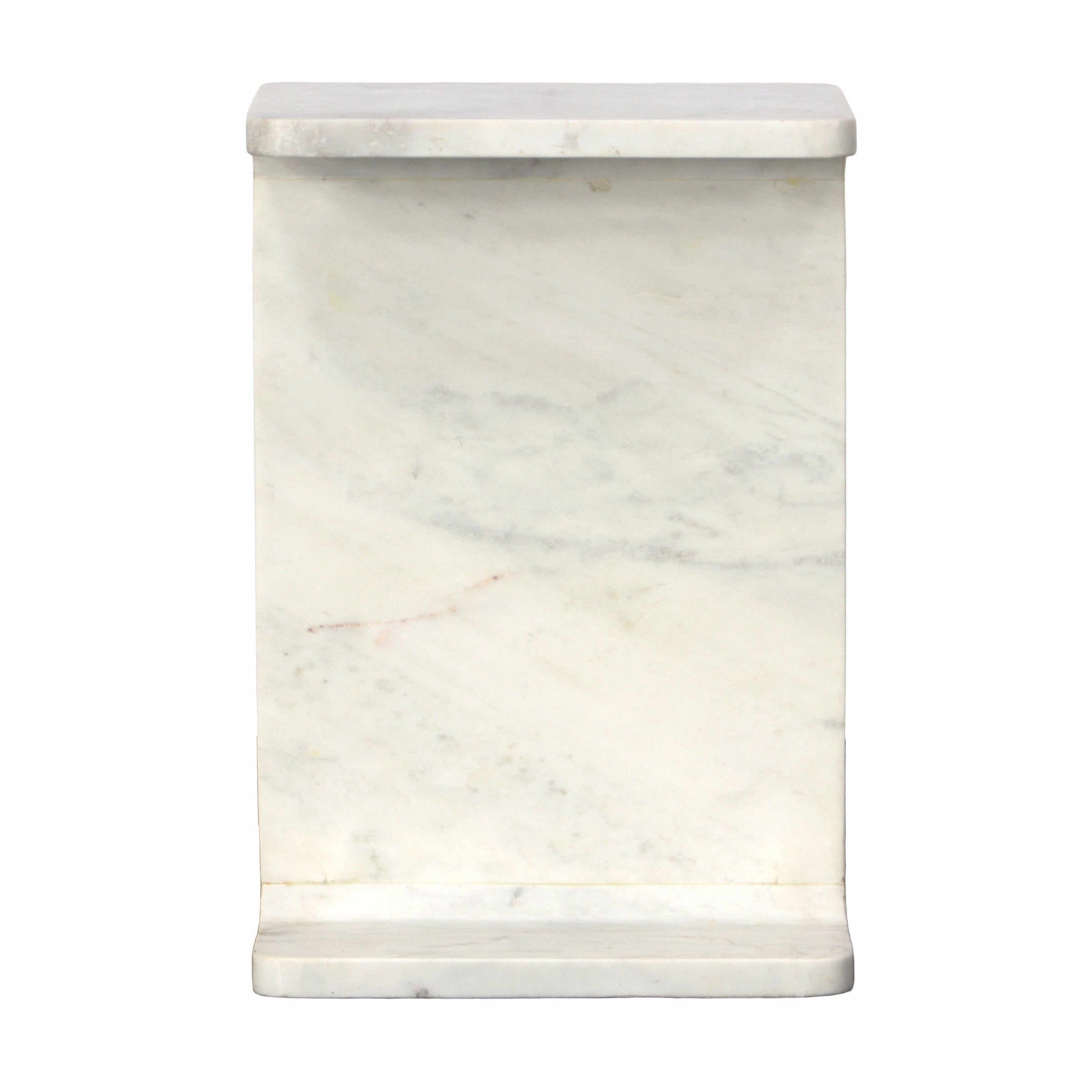 A solid marble side table with a unique shape. Perfect for a pop of interest in any living space.
