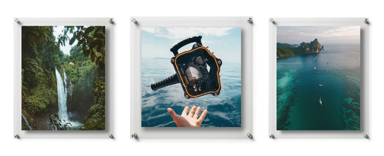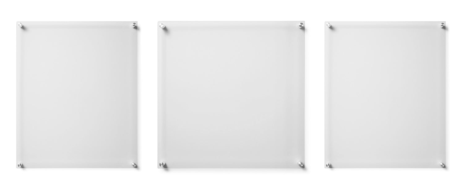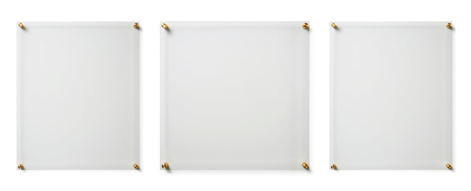 This set of 3 Wexel Art displays lets create your own gallery in many configurations. Each frame consists of two, high-quality panels of acrylic that exhibit your piece. Float your artwork and posters off the wall while fully enclosing your art in between the two panels of acrylic. When you want to change out your display, just unscrew the caps on the hardware and lift off the acrylic.