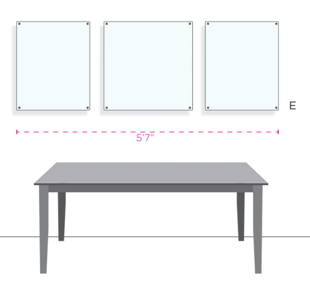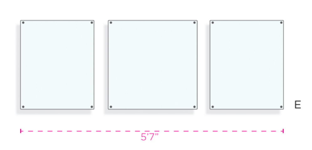Three is key when designing a gallery wall. Showcase posters, artwork, and photos. Also works beautifully for retail store settings and design firms showcasing creative concepts.
