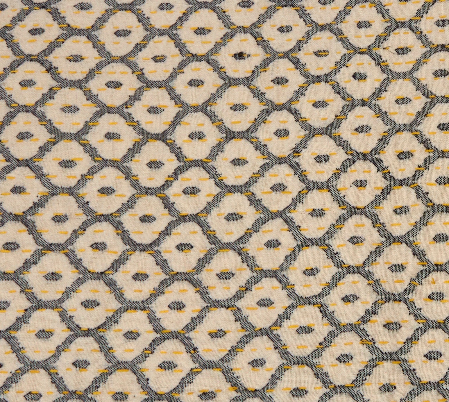 The creation of this design involves spinning and weaving hand-dyed cotton using artisan techniques that have been passed down through generations. Hand-sewn kantha stitching is the finishing touch. The craftsmanship involved at each stage of hand-dying, hand-spinning, hand-looming, hand-cutting, and hand-sewing ensures that every finished piece is truly one-of-a-kind.