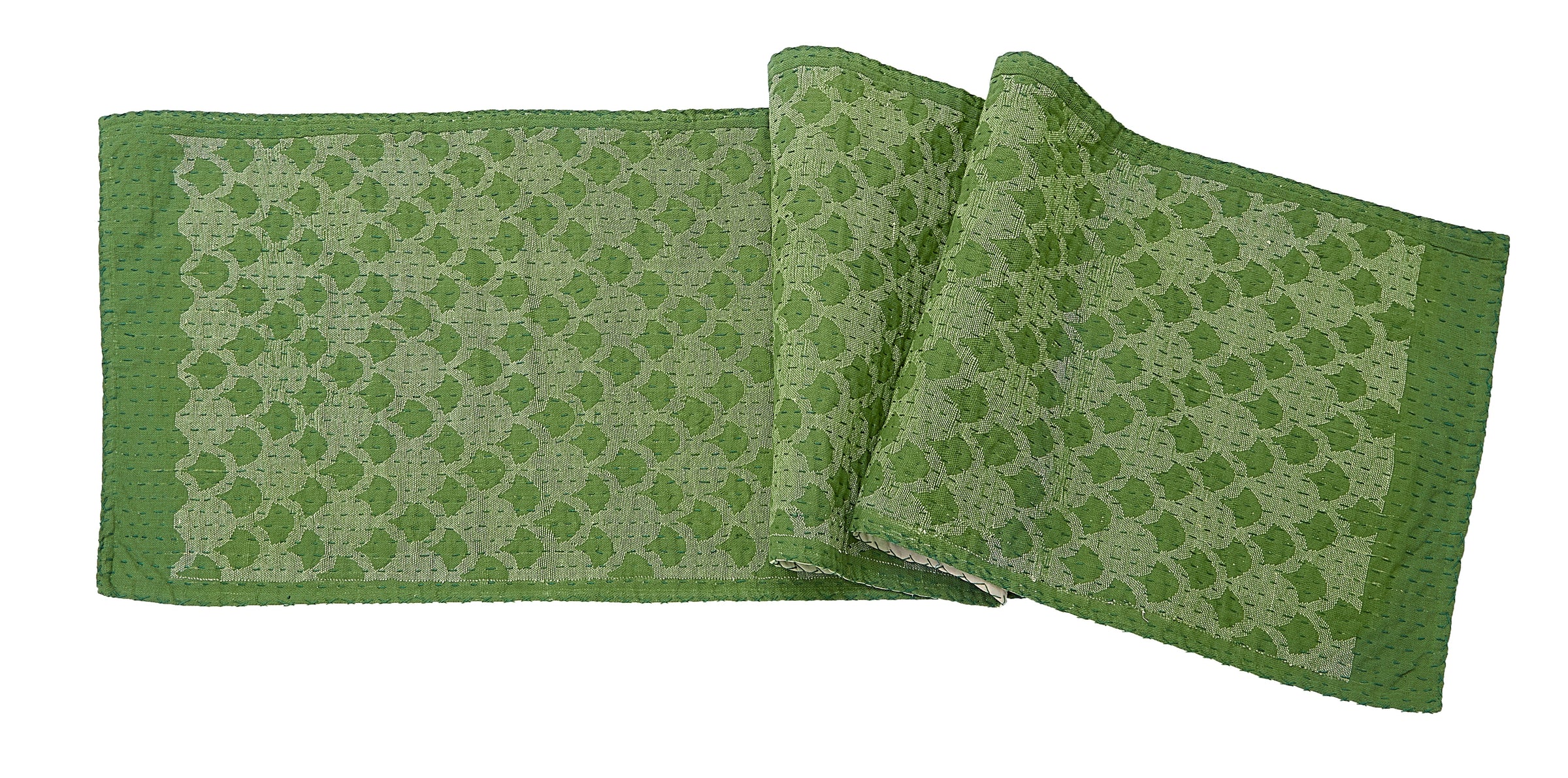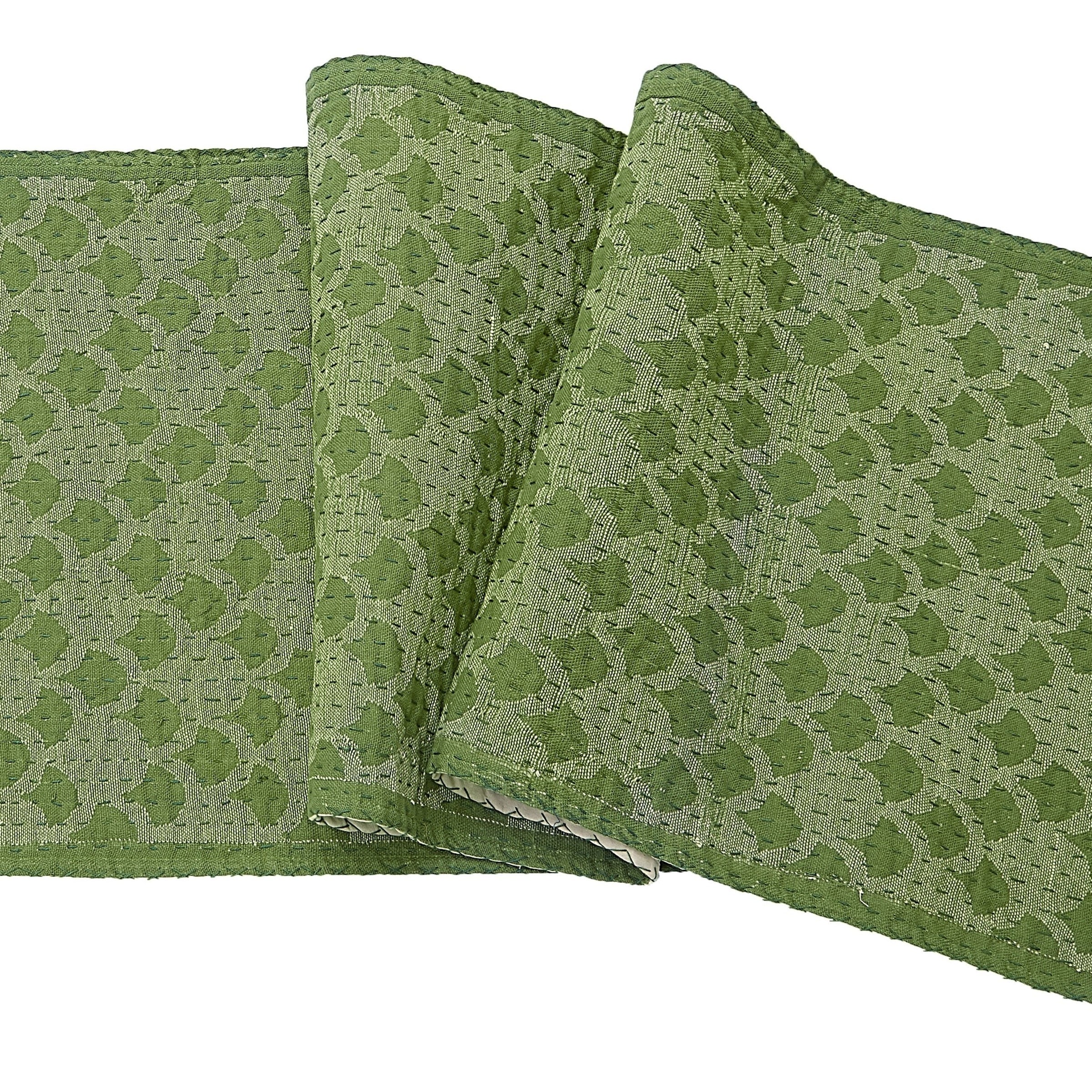 Artisan Hand Loomed Cotton Table Runner - Green Ginkgo - 18"x96"